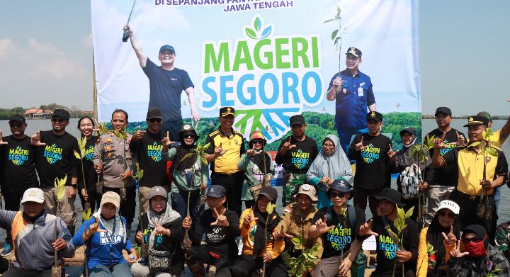 Kegiatan itu merupakan bagian dari program “Mageri Segoro” yang digagas Pemerintah Provinsi Jawa Tengah untuk menekan dampak perubahan iklim, terutama ancaman rob yang makin sering terjadi. “Program ini dilaksanakan serentak di sepanjang pantai utara dan selatan Jawa Tengah sebagai upaya antisipasi terhadap naiknya permukaan air laut,” ujarnya.