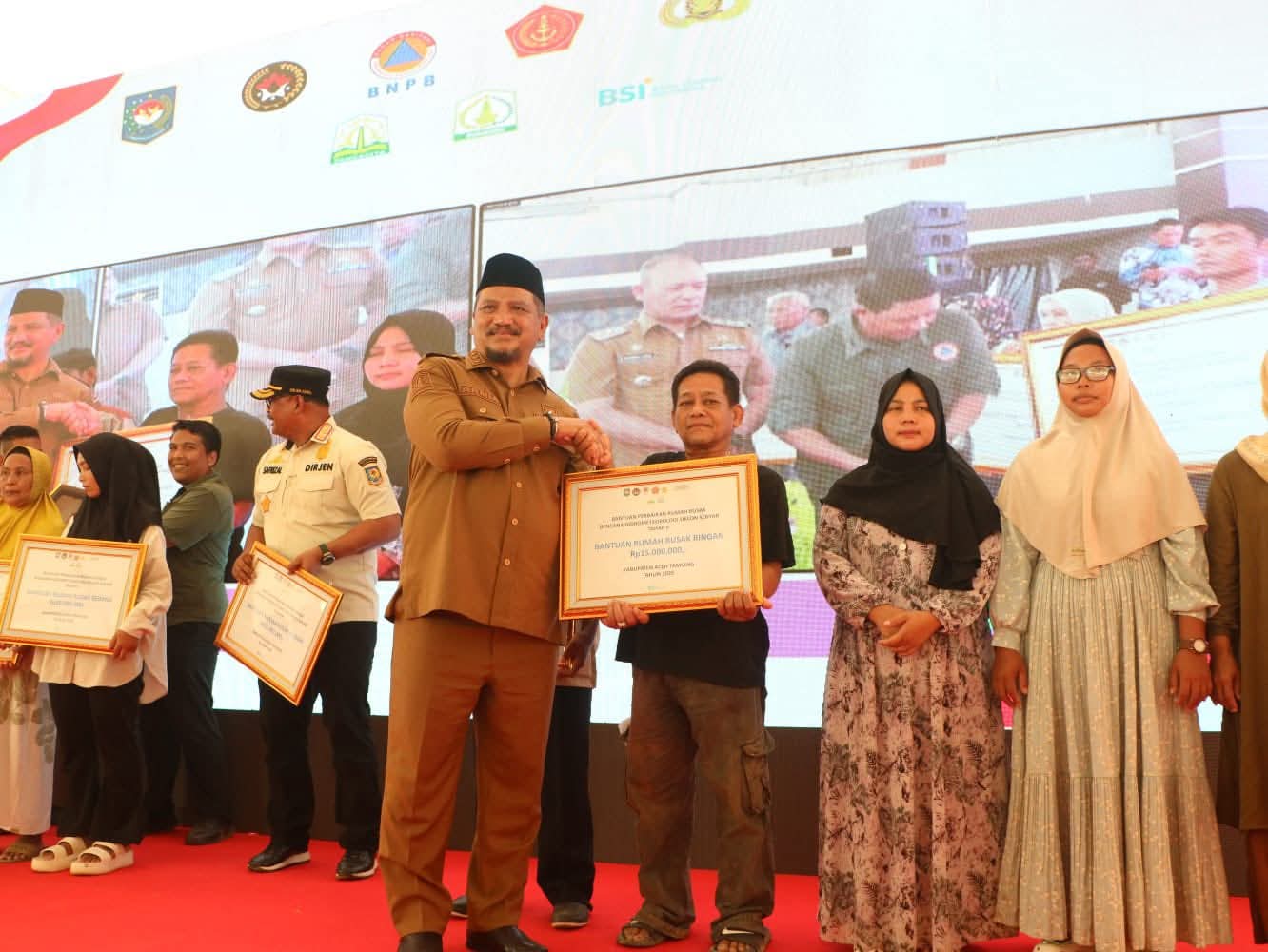 Bantuan ini diserahkan langsung oleh Menteri Koordinator bidang Pembangunan Manusia dan Kebudayaan, Prof. Dr. Pratikno didampingi Menteri Dalam Negeri RI, Muhammad Tito Karnavian, Wakil Gubernur Aceh, Fadhlullah dan Bupati Aceh Tamiang, Irjen Pol. Drs. Armia Pahmi, MH di berlangsung di halaman Kantor Bupati Aceh Tamiang.