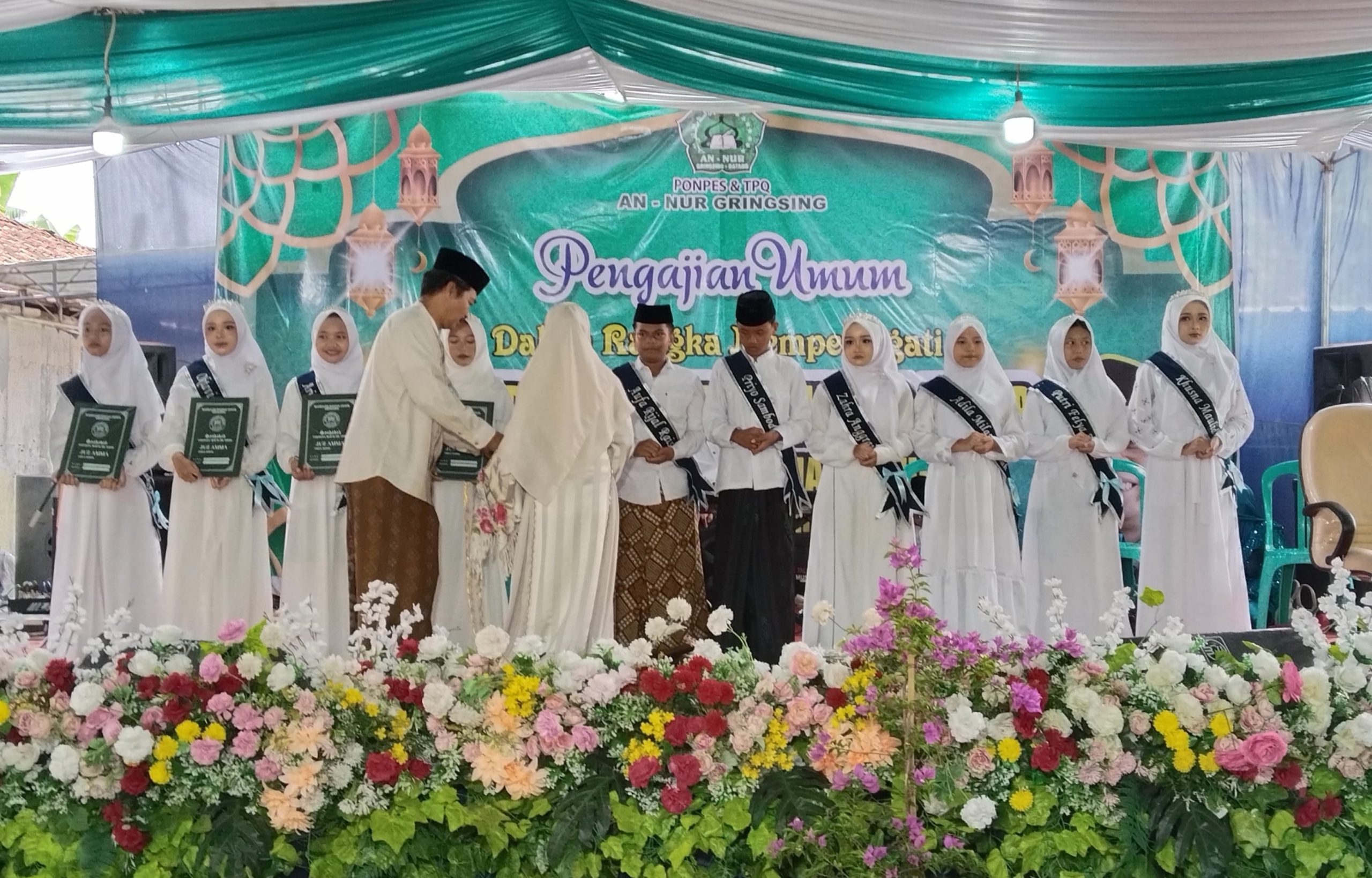 Sementara itu pimpinan Pondok Pesantren dan TPQ An Nur, KH Muhammad Nur menambahkan jika acara pengajian tersebut merupakan kegiatan rutin tahunan dan mengundang pembicara ternama. “Selain memperingati Isra’ Mikraj dan Akhirusanah, kami juga mewisuda 11 santriwan santriwati yang khatam Juz Amma”, kata ustad muda yang ramah ini.