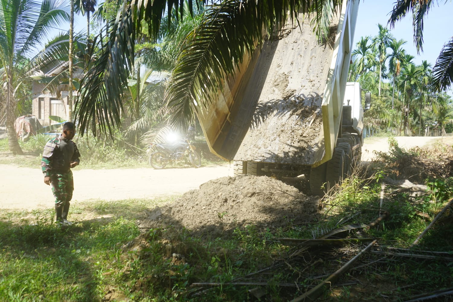 ACEH TAMIANG – Delikkasus86.com// Pengawasan droping bahan material berupa sirtu (pasir batu) untuk sasaran fisik di TMMD Reguler Ke- 128 Kodim 0117/Aceh Tamiang.