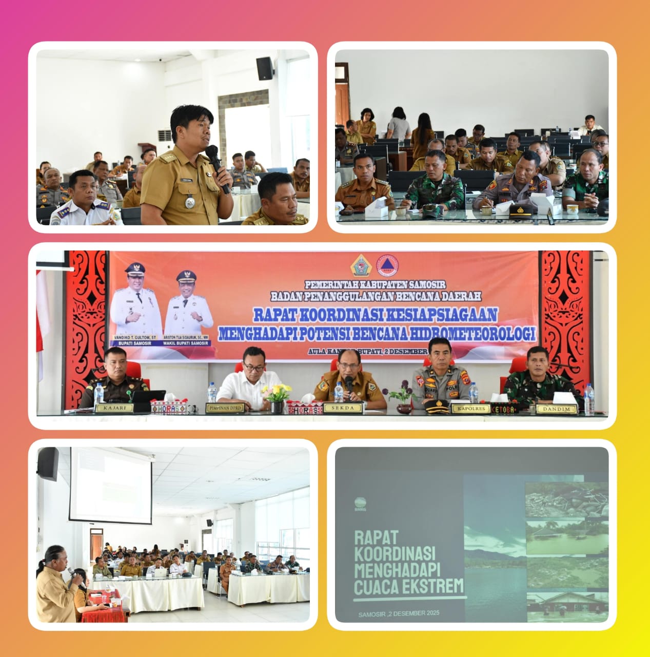 Sekda Samosir Marudut Tua Sitinjak menyampaikan bahwa berbagai kejadian bencana di wilayah Sumatera Utara harus menjadi pelajaran bagi Samosir untuk memperkuat mitigasi.
