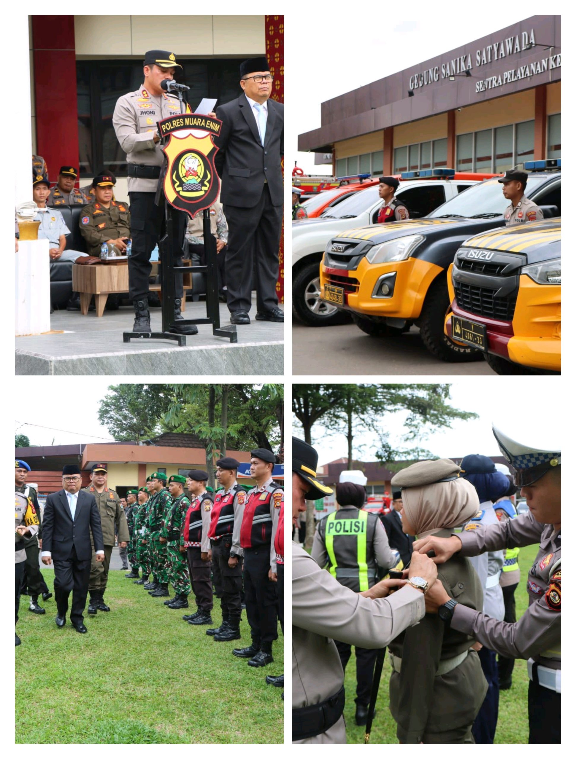 Dalam pelaksanaannya, Kapolres Muara Enim didampingi oleh Bupati Muara Enim yang diwakili Staf Ahli Bidang Pemerintahan, Hukum, dan Politik, Juli Jumanta Nuri, SE. Kehadiran unsur pemerintah daerah tersebut menunjukkan kuatnya sinergi lintas sektor dalam mendukung pengamanan Natal dan Tahun Baru di wilayah Kabupaten Muara Enim.