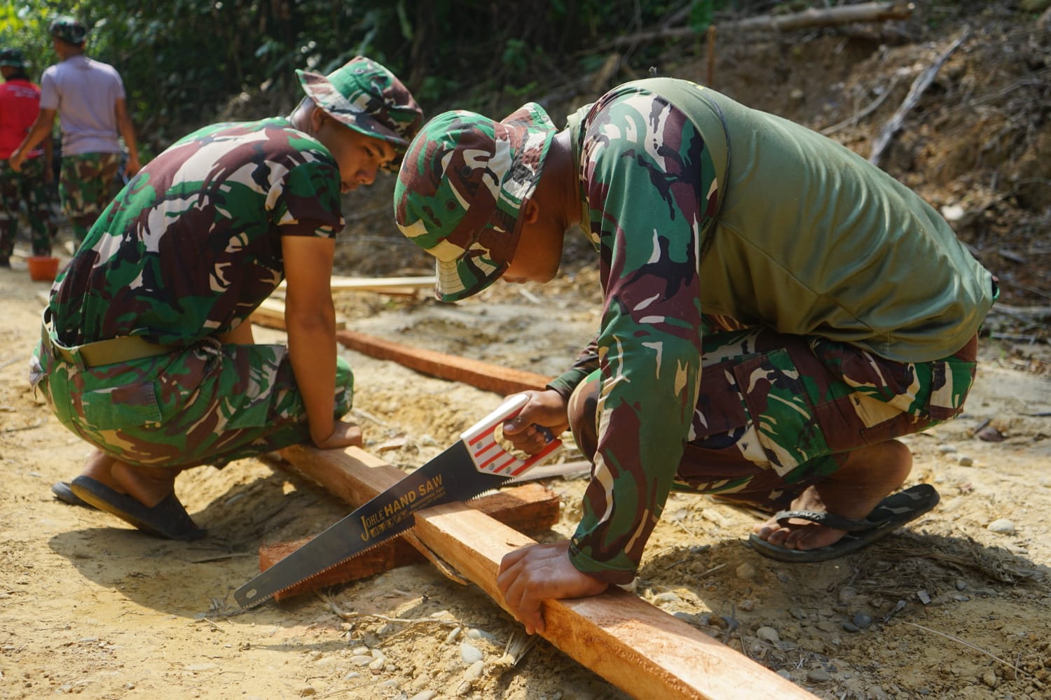 Pembuatan papan mal ini sangat penting dalam pengerjaan pembangunan pelat beton. Kami terus berupaya agar pembangunan plat beton ini selesai tepat waktu dan hasilnya bisa langsung dirasakan masyarakat, termasuk manfaatnya.” ungkap Koptu Rendi.