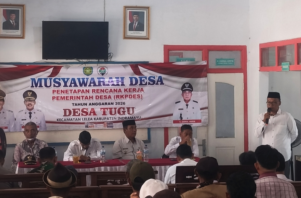 Indramayu, Delikkasus86.com — Kepala Desa (Kades) Tugu H. Zaenal Arifin, bersama Forkopimcam Lelea menghadiri kegiatan Musyawarah Desa (Musdes) Penetapan Rencana Kerja Desa (RKPDes) Tahun Anggaran 2026 di Aula Desa Tugu, Kecamatan Lelea, Kabupaten Indramayu, pada Hari Rabu (10/9/2025) pagi.