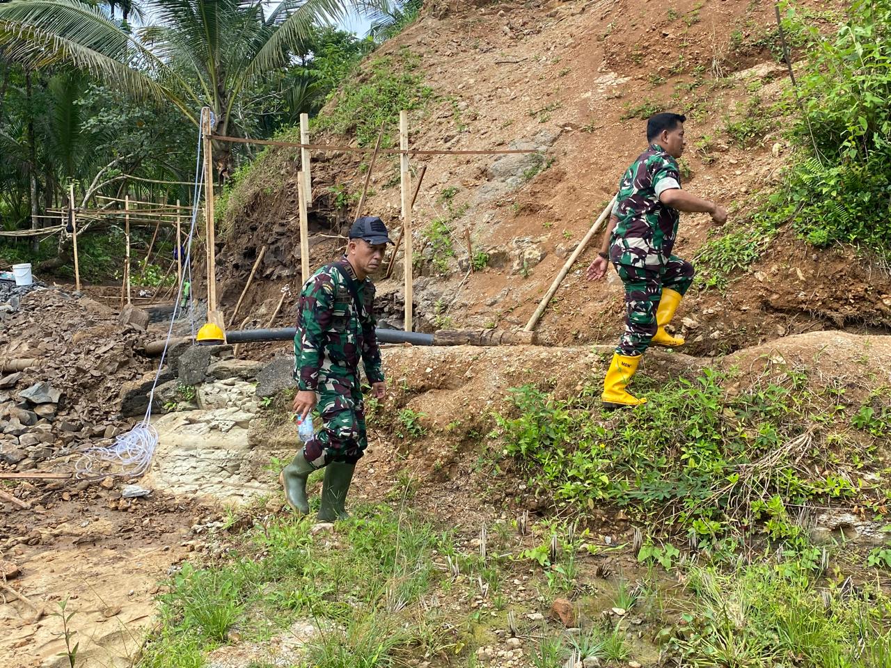 Danramil 2503/Cigugur Dampingi Tim PSDA Provinsi Jabar Tinjau Pembangunan Saluran Irigasi dan Pipanisasi