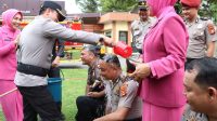 Didampingi Bhayangkari, Kapolres Muara Enim Siram Air Kembang Personel Naik Pangkat