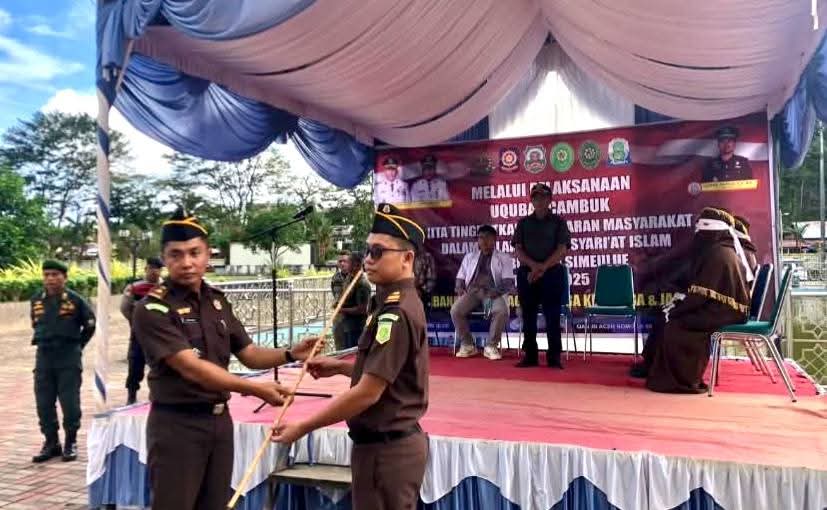 Kasie Pidana Umum Kejari Simeulue Badrunsyah menjelaskan bahwa eksekusi ini merupakan bentuk komitmen Kejaksaan dalam menegakkan qanun syariat Islam secara tegas transparan, 6 terpidana dihukum masing-masing 100 kali cambuk di hadapan khalayak banyak Berdasarkan Keputusan Mahkamah Syariah Sinabang dan ini menunjukkan kepada masyarakat bahwa Kejaksaan berkomitmen penuh menegakkan hukum berlandaskan syariat, ujar Badrunsyah dengan tegas.