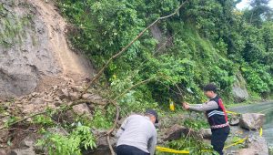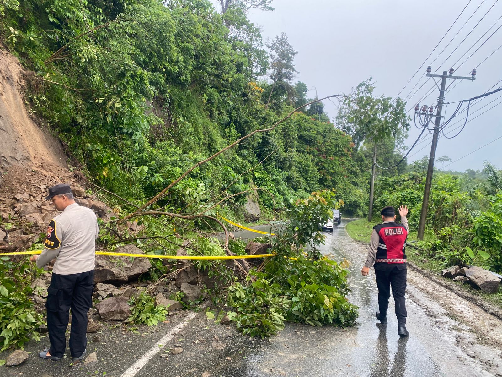 Selain melakukan pengamanan dan pengaturan lalu lintas, personel Yanmas juga memberikan imbauan kepada para pengguna jalan agar berhati-hati saat melintas, mengingat kondisi cuaca dengan curah hujan tinggi masih berpotensi menimbulkan longsor susulan.