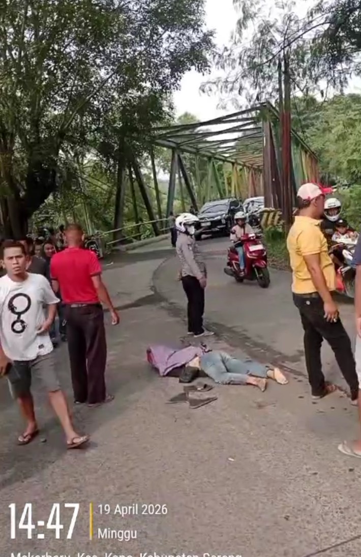 Delikkasus86 com lebak-Lubang Asparudin (27), Pria asal Kabupaten Pandeglang yang mengendarai sepeda motor, Meninggal dunia setelah terlindas dump truk bermuatan pasir di dekat Jembatan panunggulan maja, Kecamatan kopo, Kabupaten serang, Minggu (19/4/2026).