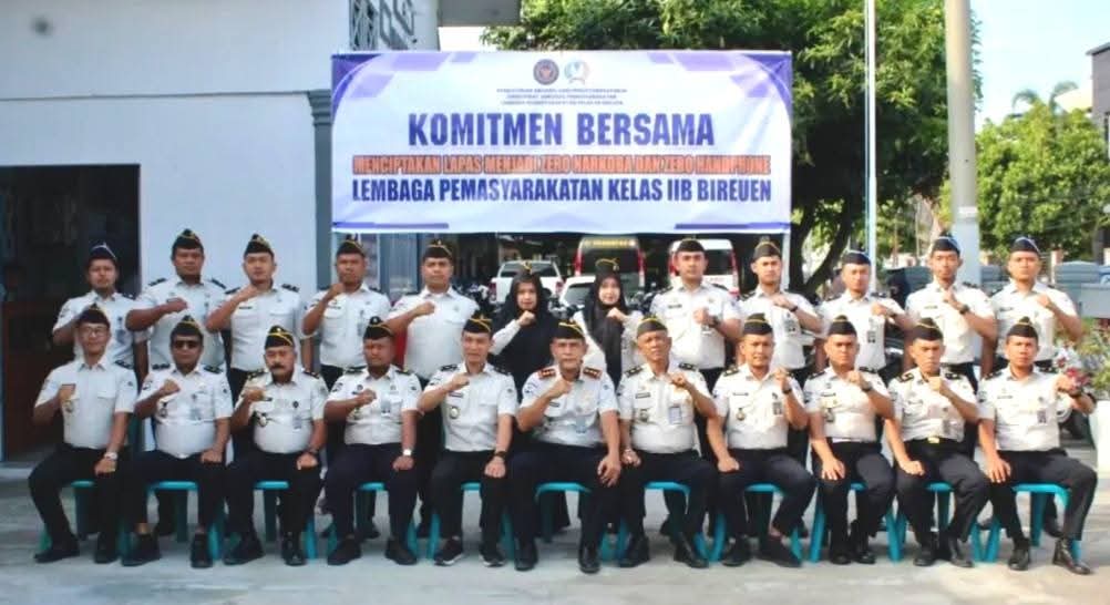 Bireuen, delikkasus86.com – Dalam upaya memperkuat integritas serta menciptakan lingkungan pemasyarakatan yang bersih dan aman, jajaran Lembaga Pemasyarakatan (Lapas) Kelas IIB Bireuen melaksanakan kegiatan Deklarasi Komitmen Bersama Zero Narkoba dan Zero Handphone.