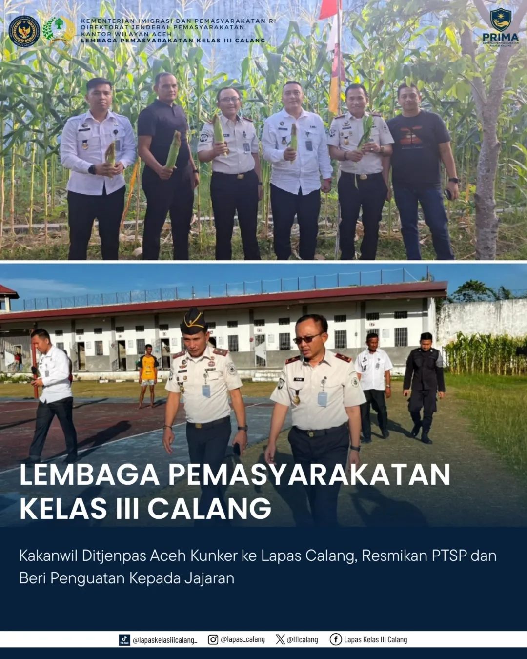 Kakanwil Ditjenpas Aceh Yan Rusmanto, memberikan apresiasi atas upaya yang telah dilakukan oleh Kalapas Calang dan jajaran, khususnya dalam menjaga kebersihan lingkungan Lapas serta menghadirkan berbagai inovasi pembinaan.