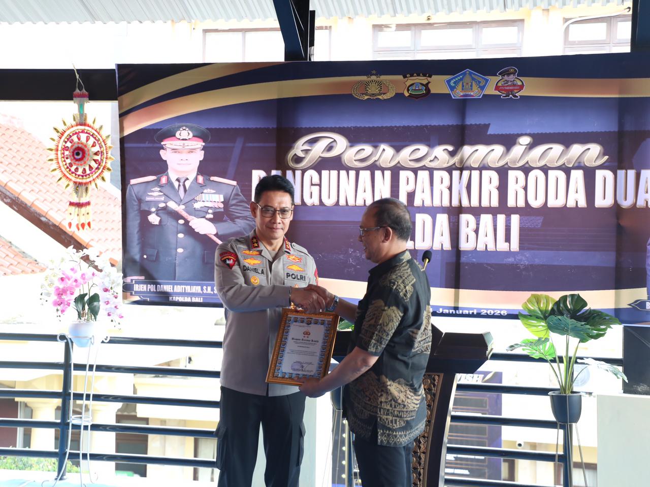 Peresmian bangunan parkir ini ditandai dengan pemberian Cinderamata dari kapolda Bali kepada Gubernur Bali yang di wakili Kasbangpol Prov Bali dan dilanjutkan penandatanganan prasasti serta peninjauan langsung fasilitas oleh Kapolda Bali bersama para Pejabat Utama Polda Bali. Bangunan tersebut diharapkan mampu menciptakan lingkungan kerja yang lebih rapi, tertib, dan representatif di Mapolda Bali.