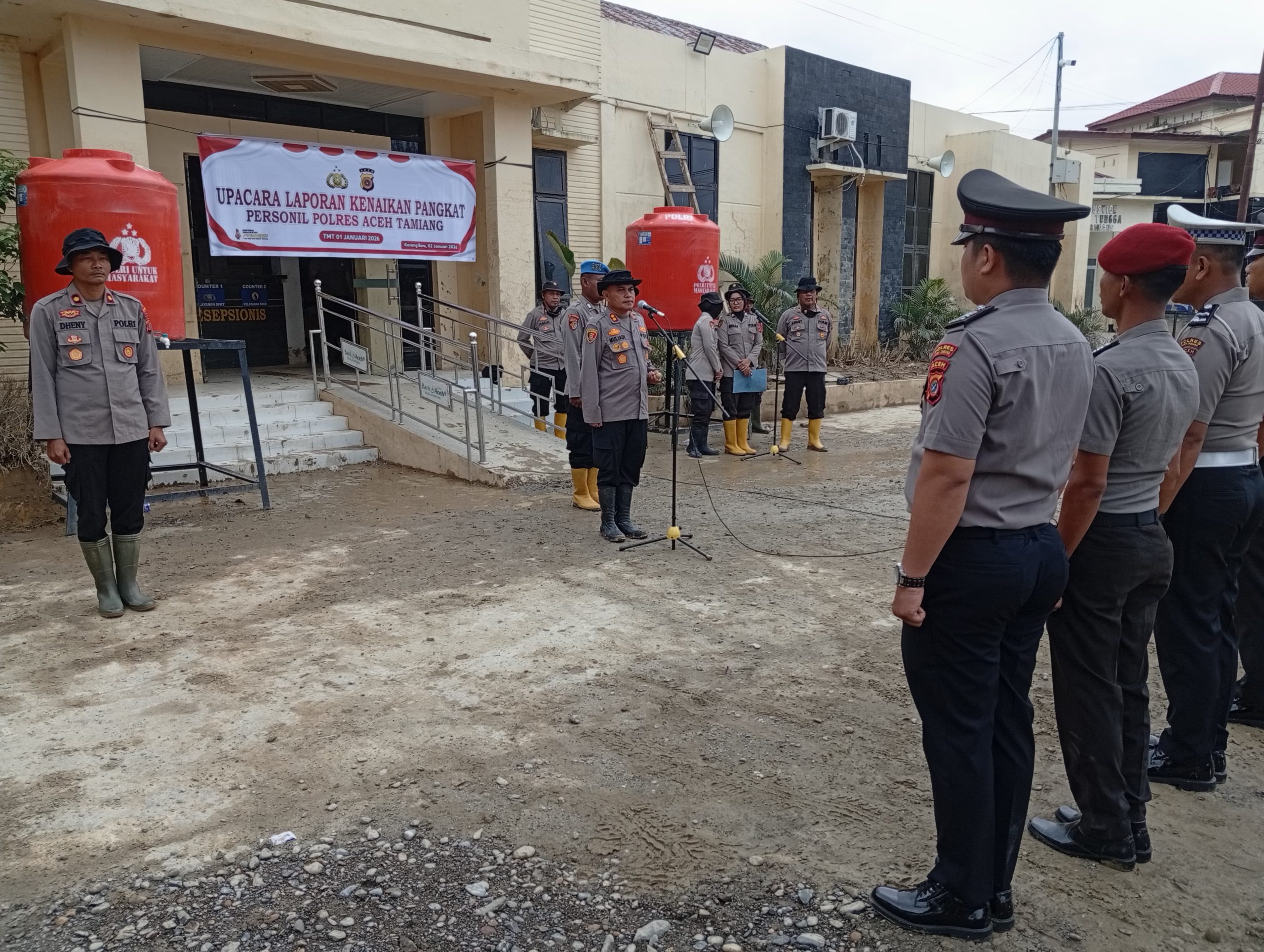Aceh Tamiang – Delikkasus86.com// Kapolres Aceh Tamiang AKBP Muliadi, S.H, M.H memimpin upacara korps raport laporan kenaikan pangkat periode 1 Januari 2026 yang di ikuit sebanyak 113 Personil di Mapolres Aceh Tamiang. Jum’at 2 Januari 2026.