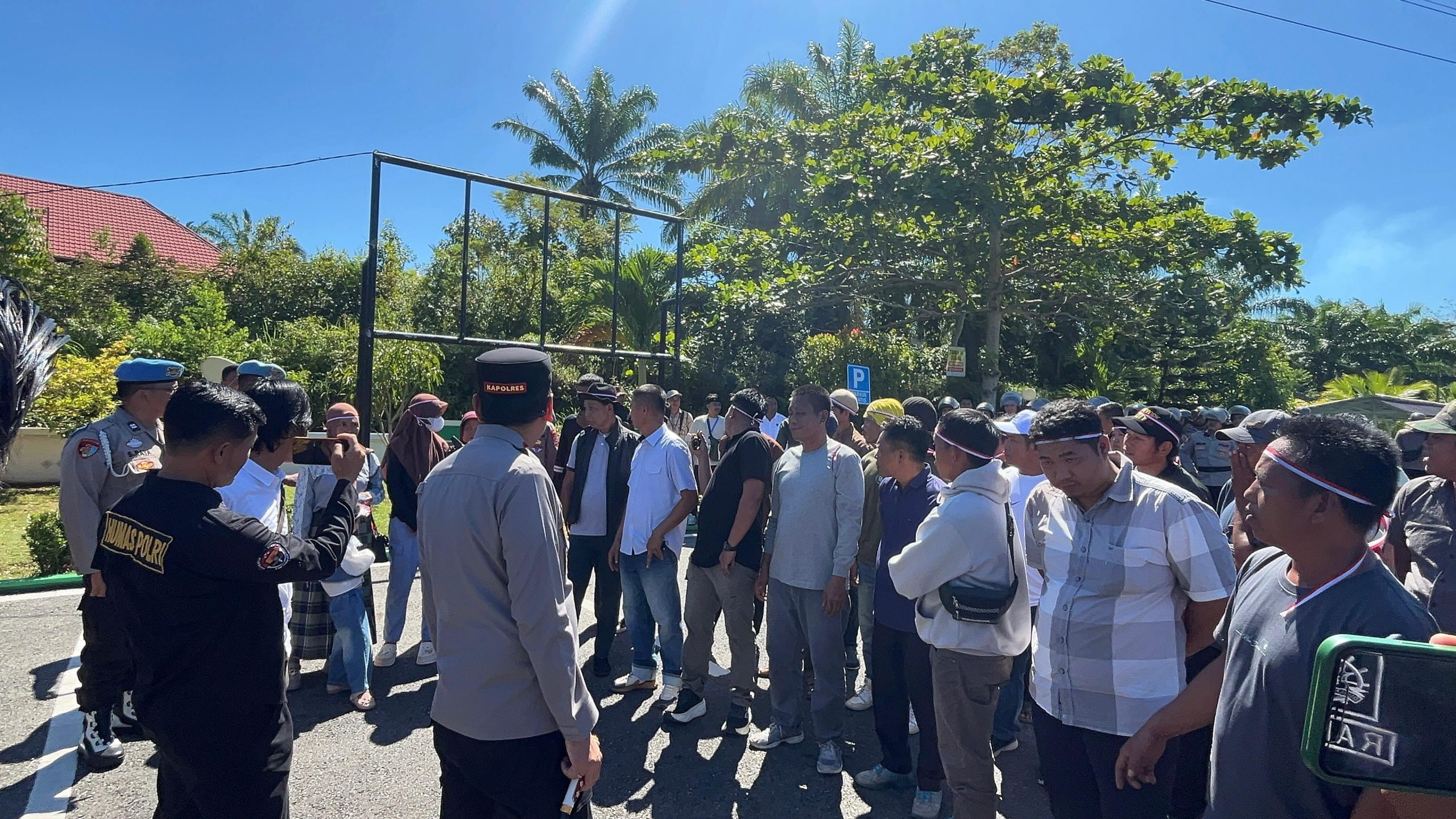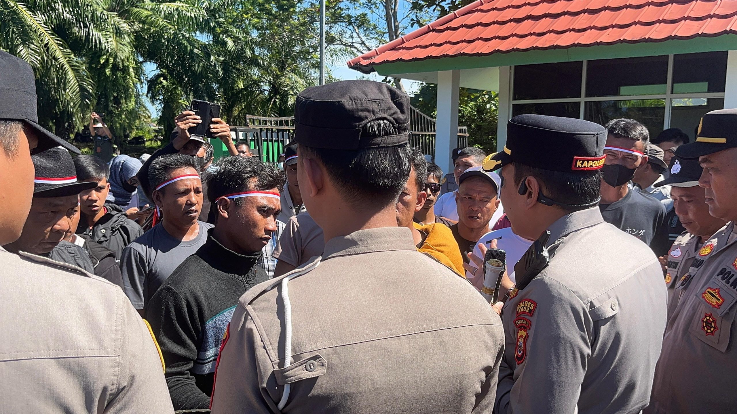 KAUR BENGKULU– Kapolres Kaur, AKBP Alam Bawono, S.I.K., M.Tr.Opsla, turun langsung memimpin pelayanan dan pengamanan aksi unjuk rasa (UNRAS) yang digelar oleh Gerakan Masyarakat Muara Sahung Bersatu (GMMSB), Senin (13/04/2026).