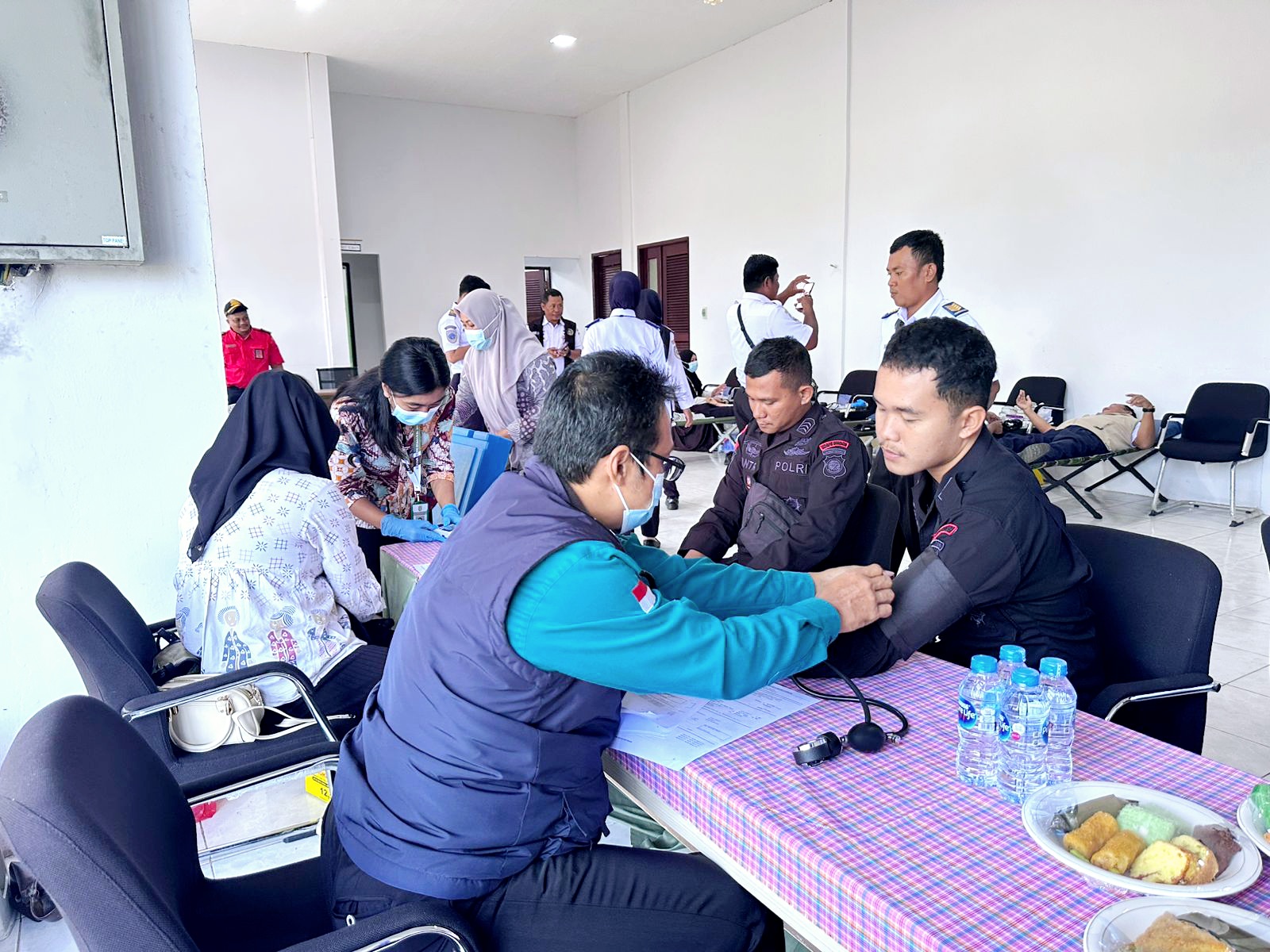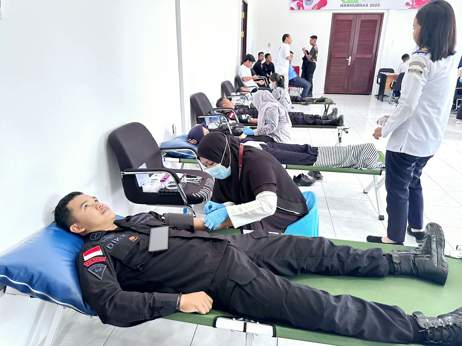 Senin-15-September-2025, Personel Batalyon C Pelopor kabupaten Sintang Kalbar Satbrimob Polda Kalbar turut berpartisipasi dalam kegiatan Donor Darah yang dilaksanakan di Bandara Tebelian Sintang, dalam rangka memperingati Hari Perhubungan Nasional.