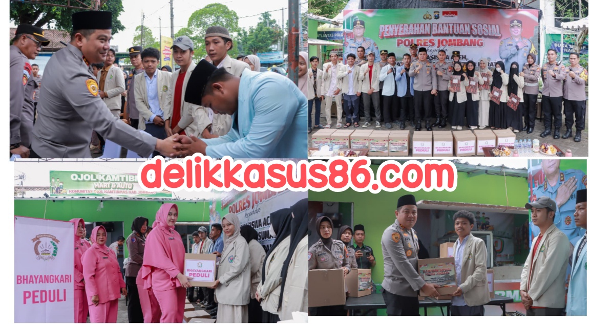 Keluarga Besar Polres Jombang melaksanakan kegiatan pemberian bantuan sosial (bansos) kepada mahasiswa asal Aceh, Sumatera Utara, dan Sumatera Barat yang sedang menempuh pendidikan di Kabupaten Jombang. Kegiatan tersebut dilaksanakan pada Jumat, (19/12/2025), siang, bertempat di Posko Ojol, Jl. KH. Hasyim Asy’ari No. 1, Desa Kaliwungu, Kecamatan Jombang.