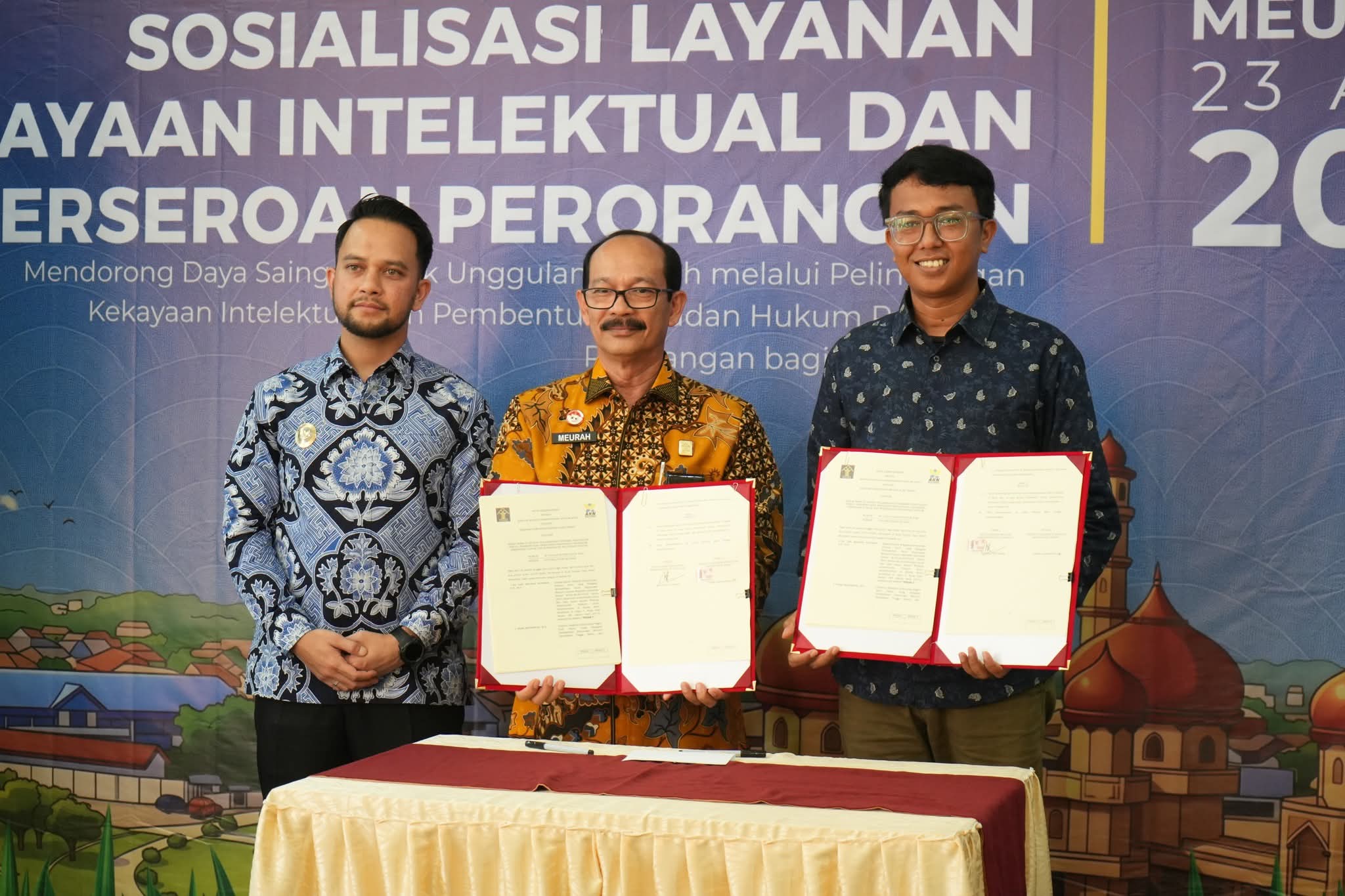 “Penandatanganan ini bukan sekadar seremonial. Ini jembatan agar mahasiswa dan dosen lebih mudah mendaftarkan hak cipta, paten, maupun merek. Kami ingin marwah karya lokal Aceh Barat terlindungi secara hukum,” ujar Meurah Budiman, Kamis, 23 April 2026.