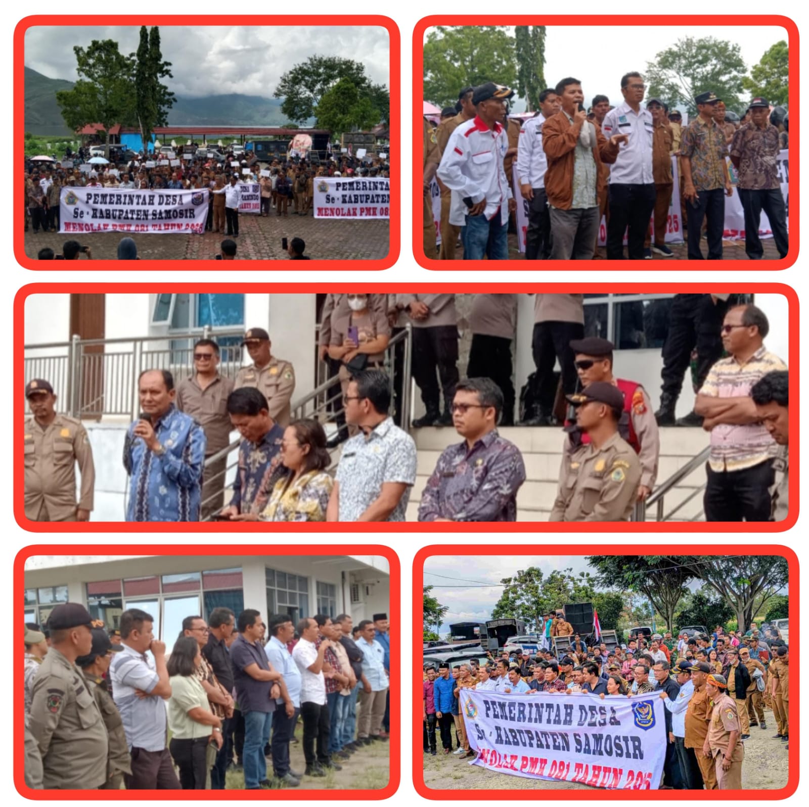 Pada aksi tanpa kehadiran Bupati Samosir tersebut, Ketua APDESI Kabupaten Samosir Raja Simarmata dengan tegas menolak PMK 081 Tahun 2025.