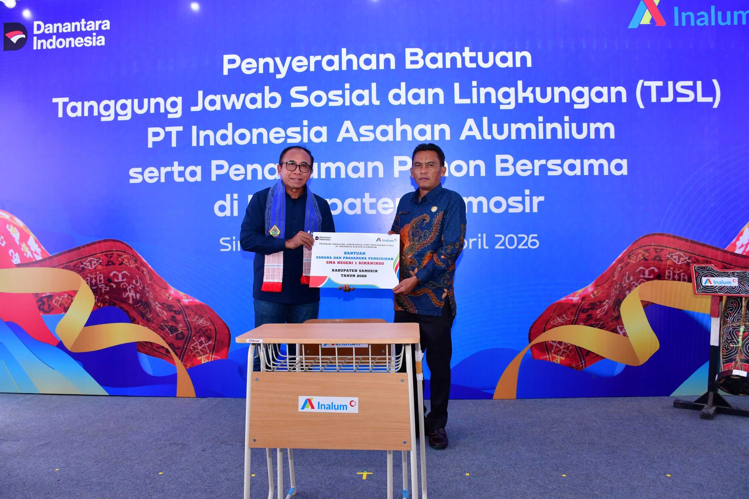 Samosir_PT Indonesia Asahan Aluminium (Inalum) memberikan bantuan melalui program Tanggung Jawab Sosial dan Lingkungan (TJSL) kepada SMA Negeri 1 Simanindo (sering disebut sebagai SMAN 1 Ambarita), yang berlokasi di Kecamatan Simanindo, Kabupaten Samosir