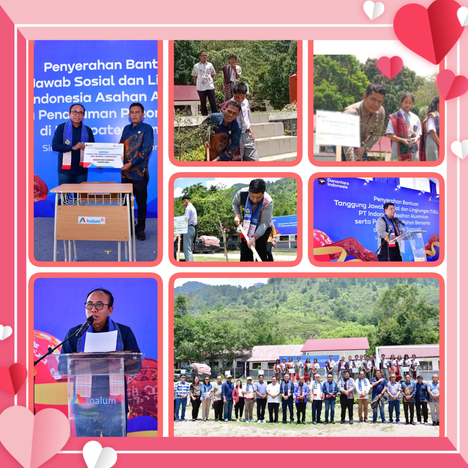 Yaitu Bantuan ,Mobiler Kursi/meja Sekolah untuk 4 ruang Kelas,sarana air bersih, dan tempat sampah,dan pelaksanaan penanaman pohon di Halaman Sekolah SMA Negeri 1 Ambarita, yang langsung di hadiri oleh Bapak Bupati Samosir Vandiko Timotius Gultom ST, Wakil Bupati Samosir Ariston Tua Sidauruk SE MM ,Komisaris Independen PT Inalum Hari Soebagijo, Direktur Operasional Ivan Ermisyam, Direktur Layanan Strategi Human Capital Benny Alexander Wiwoho, Sekretaris Daerah Marudut Tua Sitinjak, Kepala Dinas Kominfo Immanuel Sitanggang, Camat Simanindo Hans Sidabutar SSTP,serta pimpinan OPD lainnya