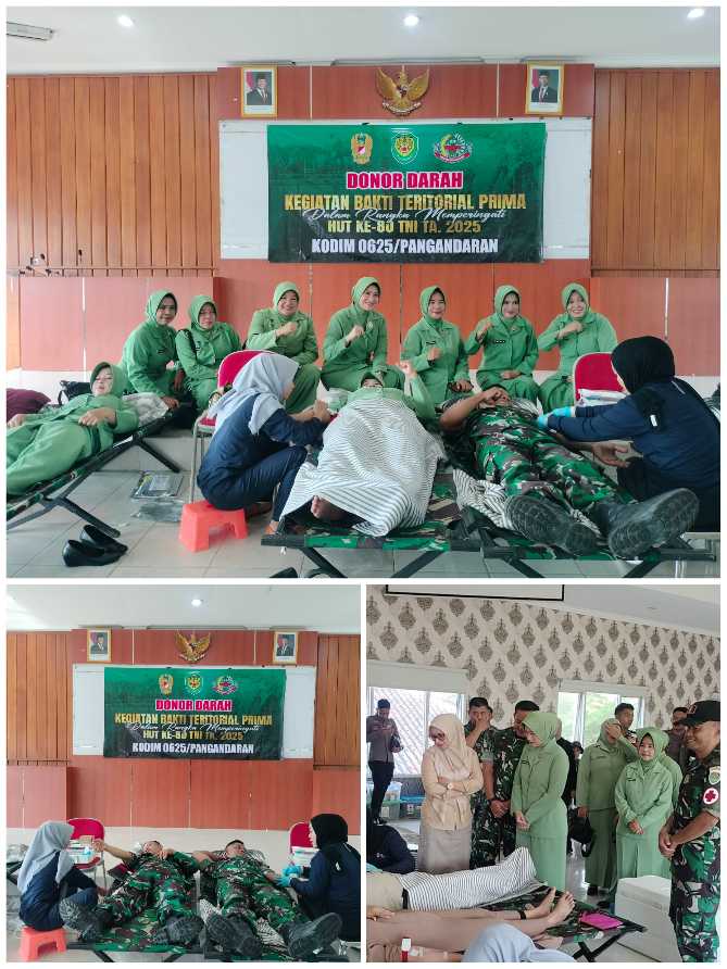 LiputanKpk.com, Pangandaran – Dalam rangka memperingati HUT TNI ke-80 tahun Kodim 0625/Pangandaran melaksanakan kegiatan Bakti Teritorial Prima berupa pengobatan gratis dan donor darah. Acara ini digelar di Pendopo desa Parigi kecamatan Parigi Kabupaten Pangandaran pada Minggu (21/09/2025) dan mendapat sambutan positif dari masyarakat yang hadir untuk mendapatkan layanan kesehatan sekaligus ikut berpartisipasi dalam donor darah.