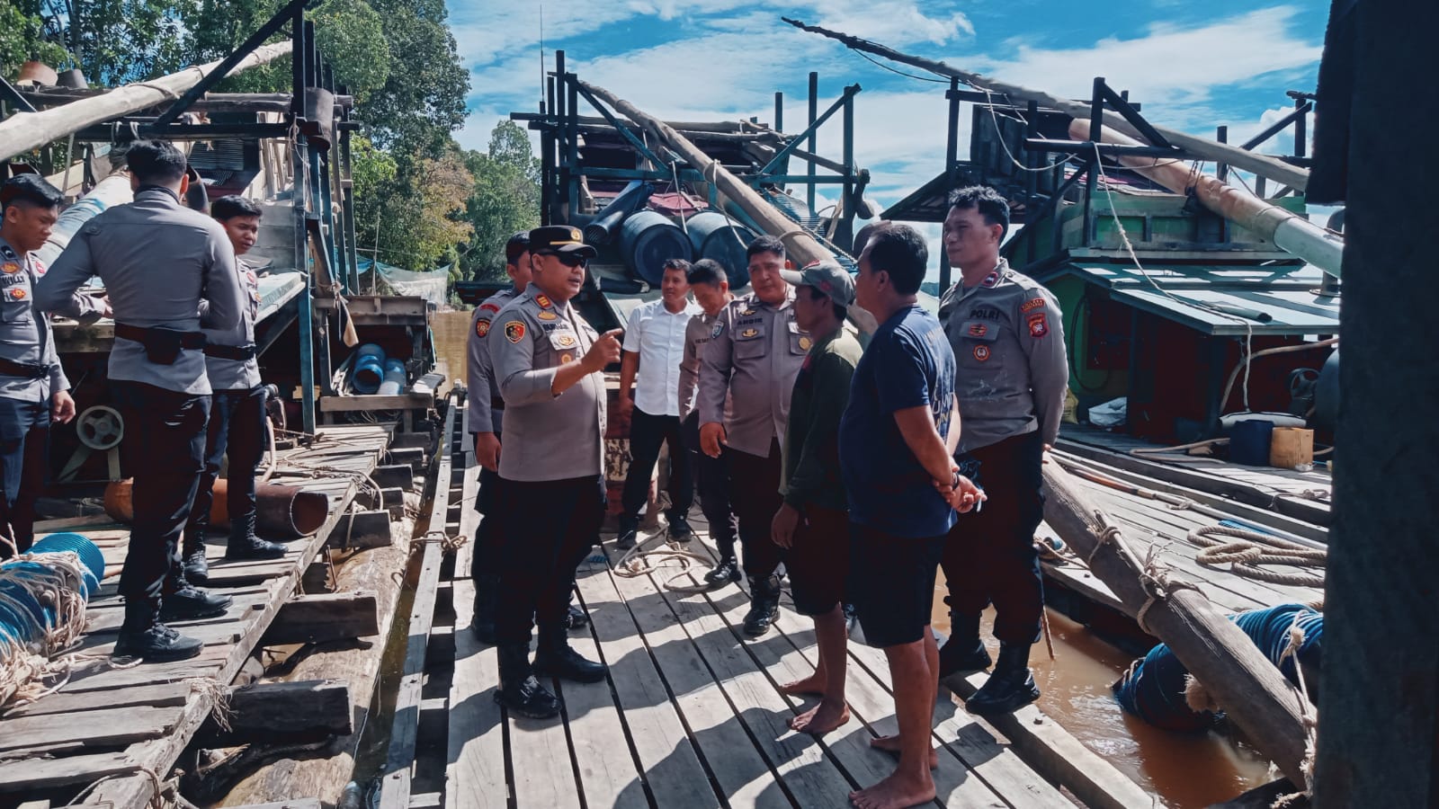 Dari hasil pengecekan, petugas menemukan 18 unit rakit tambang. Sebanyak 7 rakit berada di tepian sungai dalam kondisi tidak beroperasi, sedangkan 11 rakit lainnya masih melakukan aktivitas penambangan. Menyikapi hal tersebut, aparat di lapangan memberikan imbauan tegas secara persuasif agar seluruh kegiatan dihentikan dan rakit segera ditarik meninggalkan area sungai.