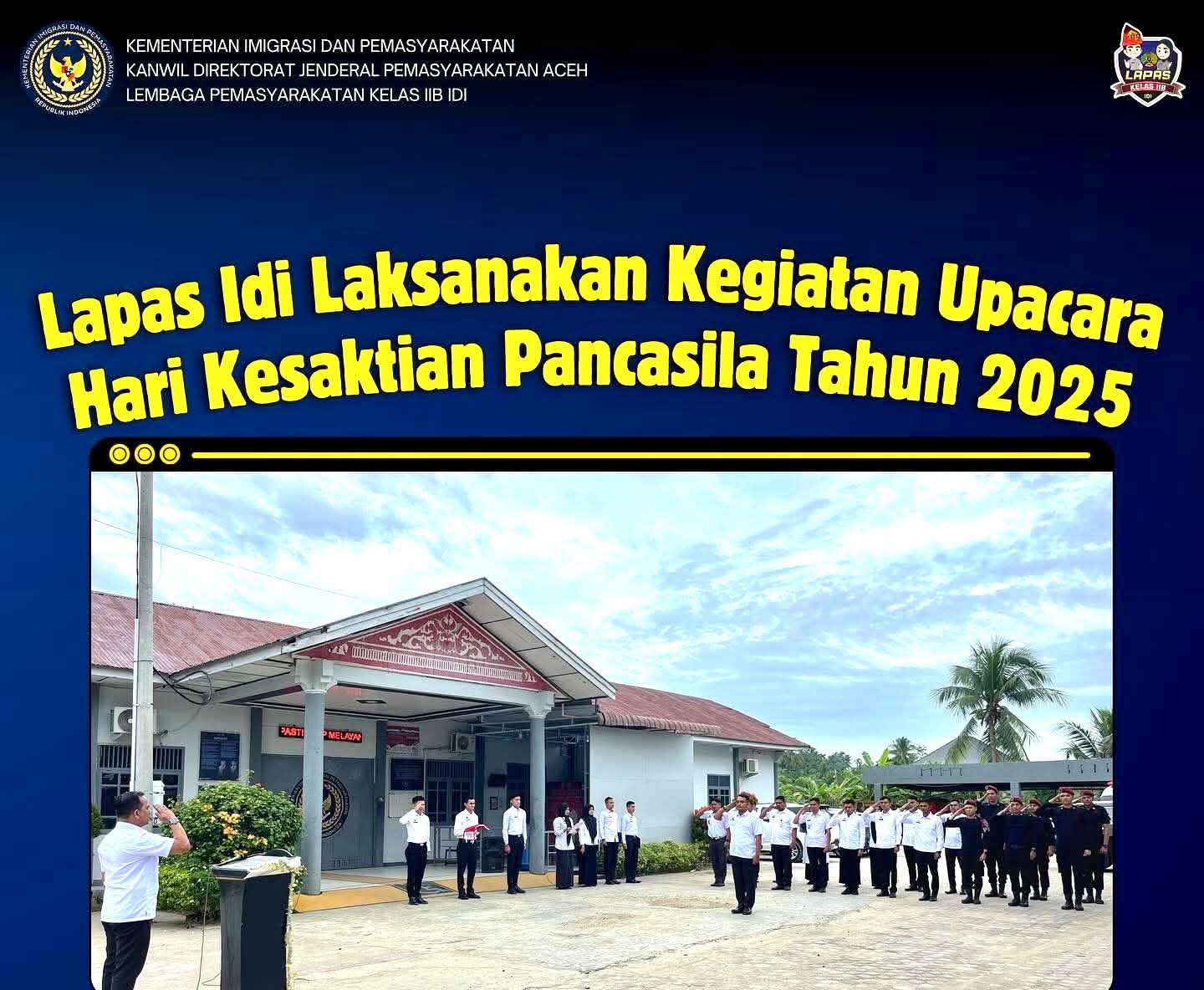 Pelaksanaan Hari Kesaktian Pancasila ini menjadi momentum refleksi bagi seluruh pegawai Lapas Kelas IIB Idi untuk terus menjaga persatuan, ketertiban, dan semangat nasionalisme dalam mendukung transformasi pemasyarakatan yang berdampak, humanis, dan berintegritas.