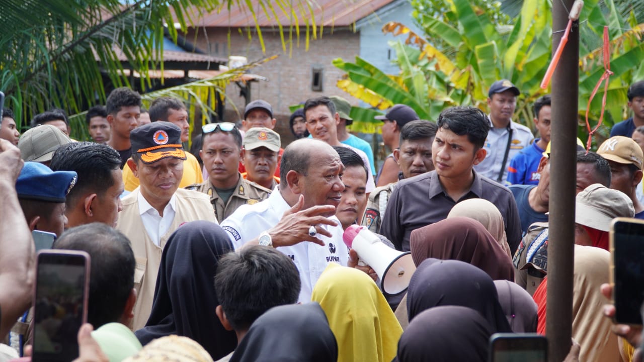 Bupati Langkat H. Syah Afandin, SH kembali menunjukkan komitmennya dalam penanganan banjir dengan turun langsung menemui warga yang terisolir. Rabu (3/12/2025) sore, ia mendatangi Desa Pantai Cermin, Kecamatan Tanjung Pura, meski akses jalan menuju lokasi masih terputus akibat banjir yang belum surut.