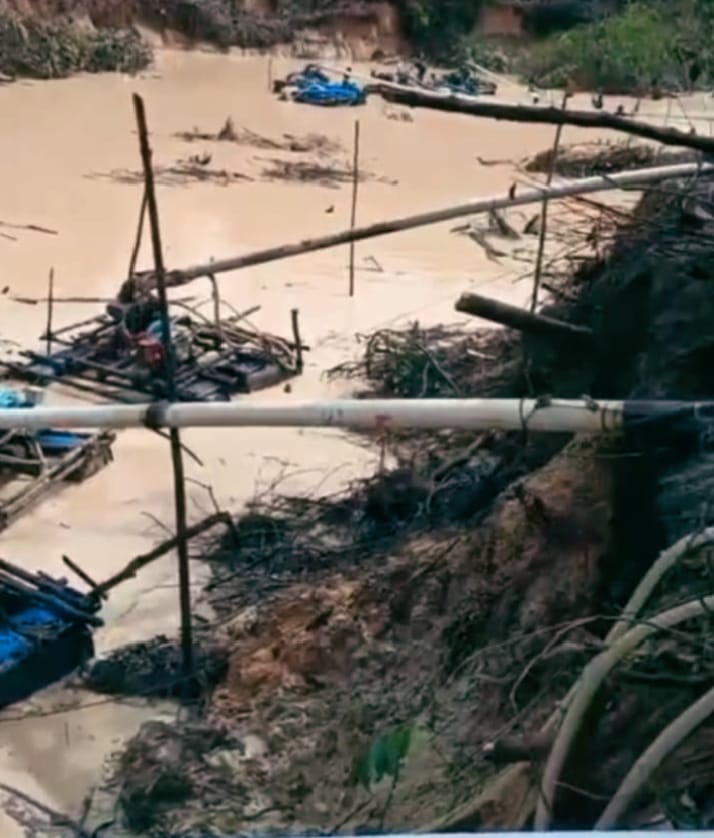 Berdasarkan laporan warga dan hasil penelusuran di lapangan, aktivitas PETI diduga terus meluas dan menyebabkan kerusakan lingkungan yang cukup parah. Sejumlah titik terlihat mengalami penggalian besar-besaran, tanah berlubang, aliran air berubah menjadi keruh, serta jejak penggunaan mesin dompeng yang mengindikasikan aktivitas masih aktif hingga saat ini.