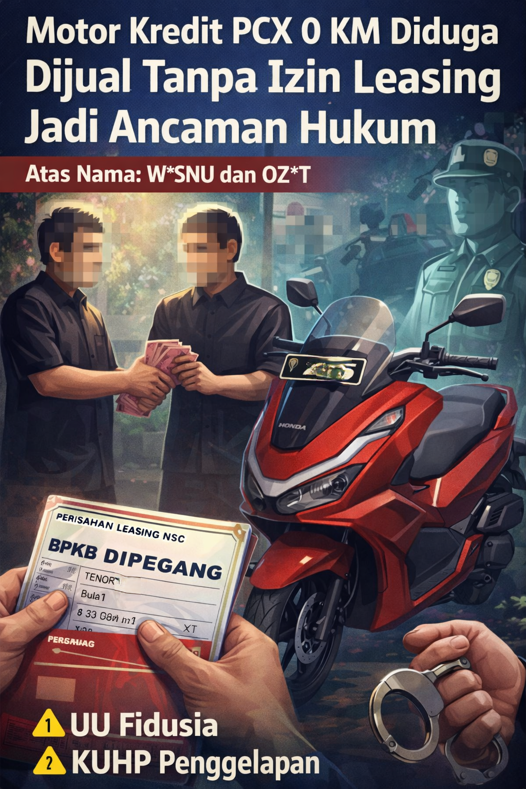 Delikkasus86.com|`SUKABUMI — Penjualan sepeda motor yang masih berstatus kredit (leasing/pembiayaan) tanpa persetujuan perusahaan pembiayaan kembali menjadi sorotan. Sebuah unit motor Honda PCX CBS Merah Tahun 2026 kapasitas 160 CC dilaporkan diduga telah dialihkan atau dijual tanpa konfirmasi kepada pihak leasing Dari Awal angsuran Pertama 15/Januari/2026