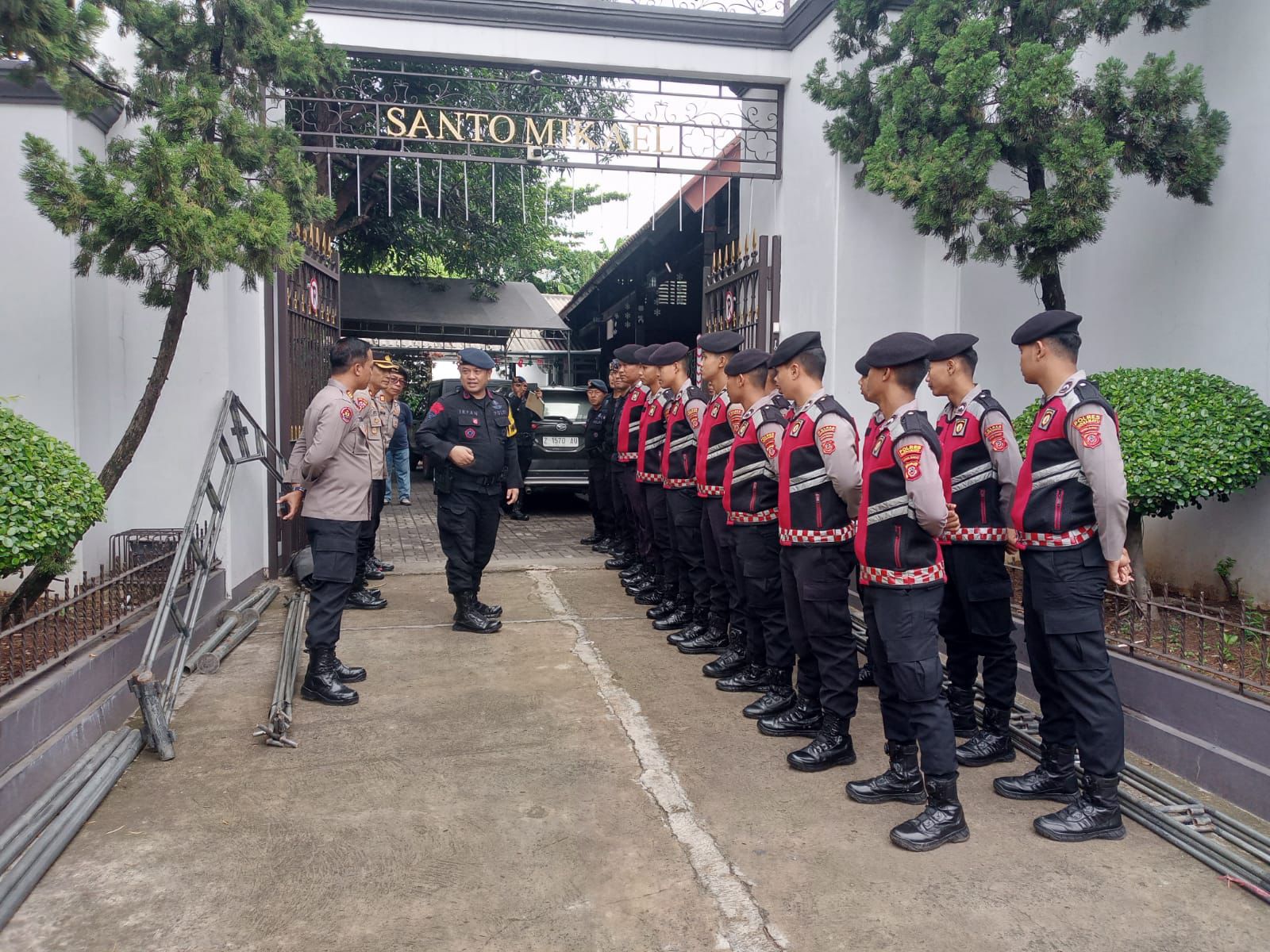 Proses sterilisasi dilakukan secara menyeluruh, baik di dalam maupun di sekitar area gereja, untuk memastikan tidak terdapat benda mencurigakan atau berpotensi membahayakan.