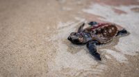 Salah satu ancaman utama penyu sisik adalah predator alami seperti biawak yang dapat memangsa telur dan tukik.
