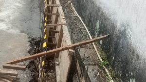 Warga sekitar yang enggan disebutkan namanya mengaku heran ketika melihat besi bekas dipasang kembali pada struktur siring yang baru dibangun.