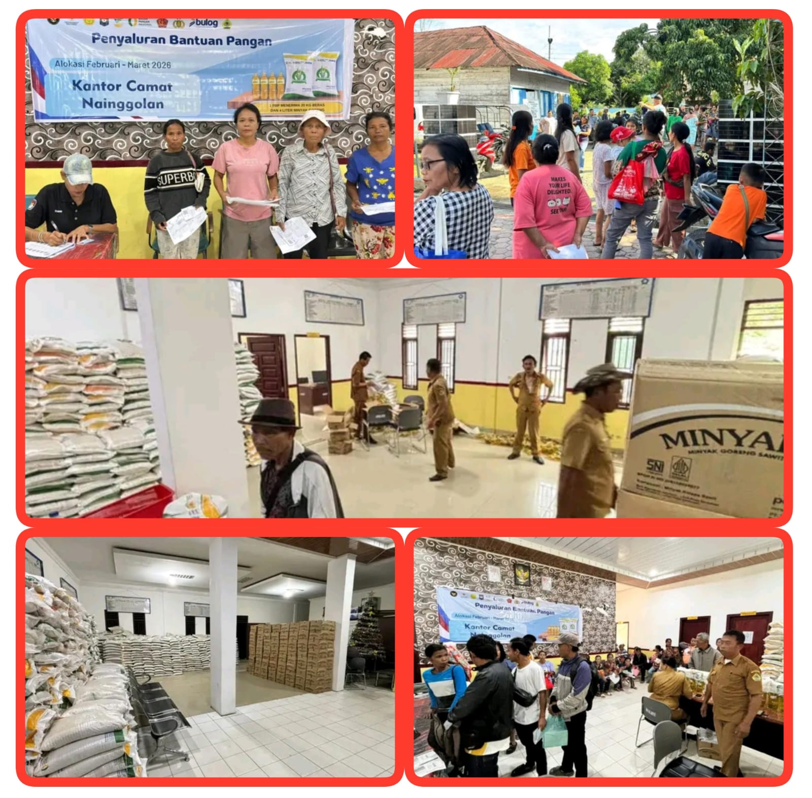 Sebanyak 37,5 ton beras medium dan 3.5 ton minyak goreng disalurkan kepada 1.880 Rumah Tangga dari 13 Desa dan 2 Kelurahan di Kecamatan Nainggolan, yang terdiri dari 20 Kg beras dan 4 Kg minyak goreng/Rumah Tangga.