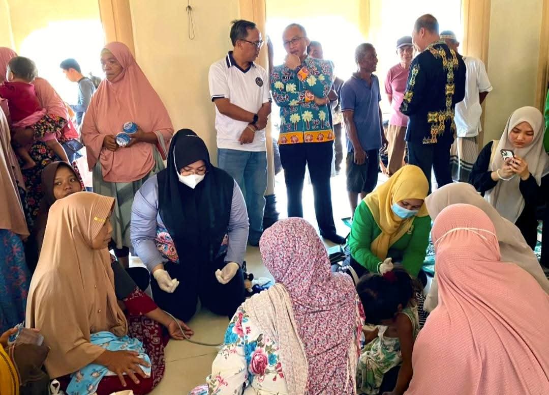 Selain penyaluran bantuan, kegiatan ini juga diisi dengan pelayanan pemeriksaan kesehatan gratis bagi masyarakat terdampak banjir.