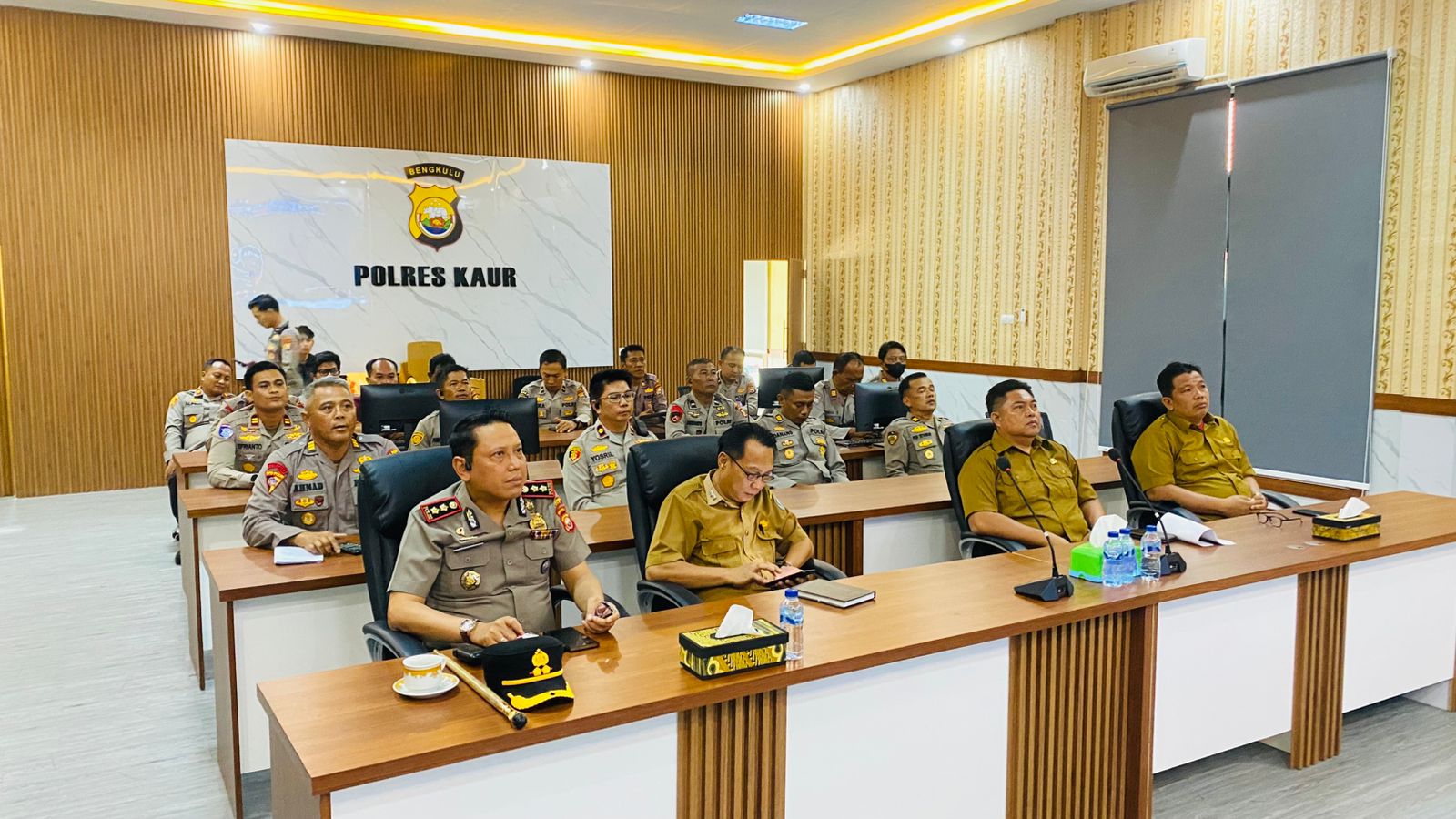 KAUR BENGKULU – Polres Kaur menggelar Zoom Meeting (Vicon) dalam rangka mengikuti arahan Wakapolri terkait antisipasi fenomena cuaca ekstrem El Nino “Godzilla”, Selasa (14/04/2026) pukul 14.00 WIB di Gedung Command Center (CC) Polres Kaur.