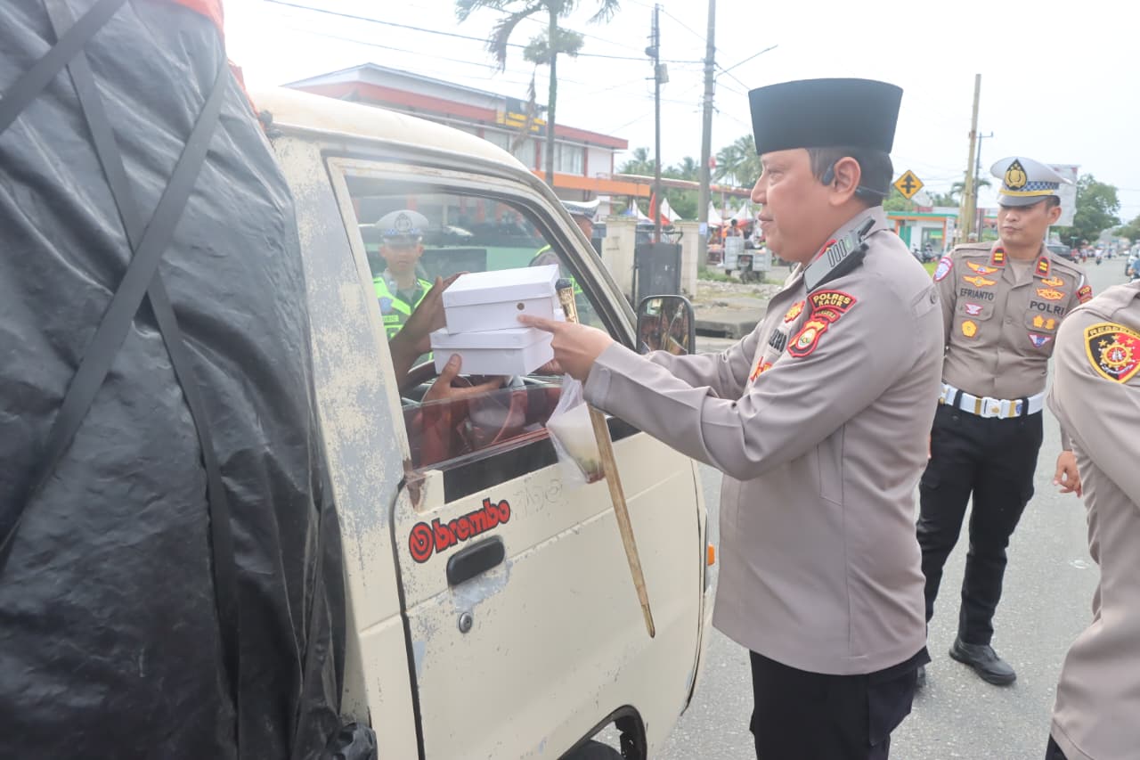 KAUR BENGKULU – Polres Kaur Polda Bengkulu bersama Bhayangkari Cabang Kaur melaksanakan kegiatan pembagian takjil kepada para pengguna jalan dalam rangka menyemarakkan Bulan Suci Ramadhan. Senin (23/02/2026).