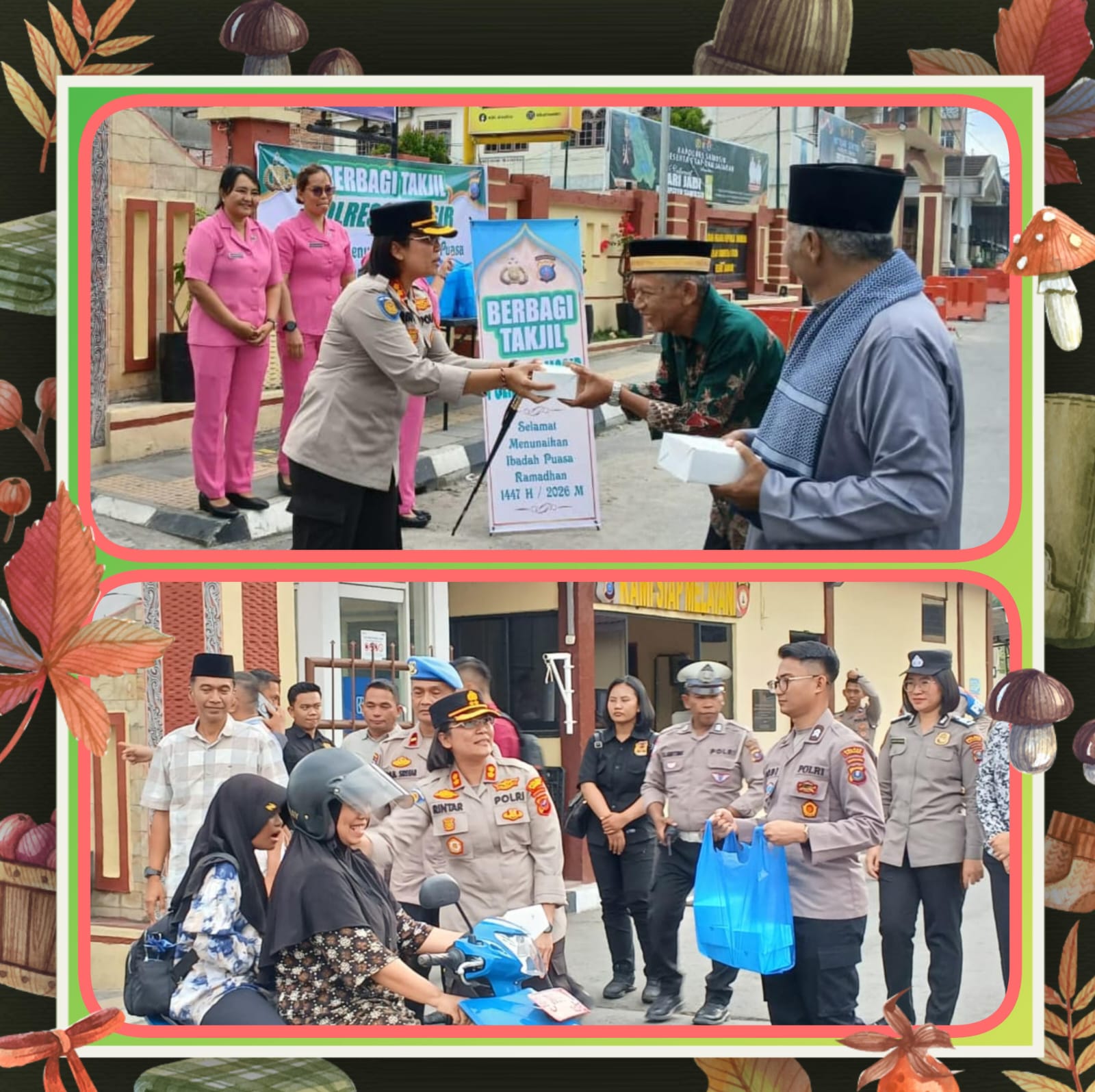 SAMOSIR – Dalam rangka menyemarakkan Bulan Suci Ramadan 1447 H/2026 M, Polres Samosir menggelar kegiatan berbagi takjil kepada masyarakat, Selasa (03/03/2026) pukul 17.00 WIB.
