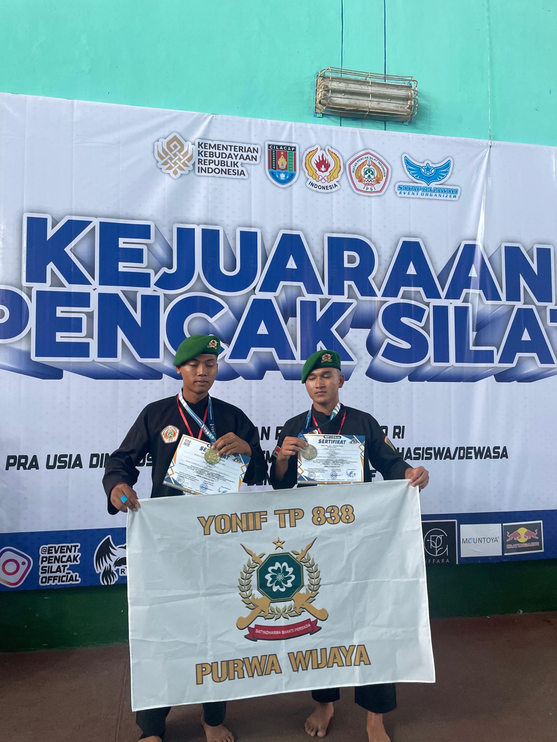 CILACAP JATENG, delikkasus86.com– Prajurit Yonif TP 838/Purwa Wijaya kembali mengharumkan nama satuan dengan torehan prestasi membanggakan pada ajang Kejuaraan Pencak Silat Cilacap Championship 3 Tingkat Nasional TA 2025 yang berlangsung di GOR Indoor Tenis Kabupaten Cilacap, pada tanggal 13 hingga 14 September 2025.