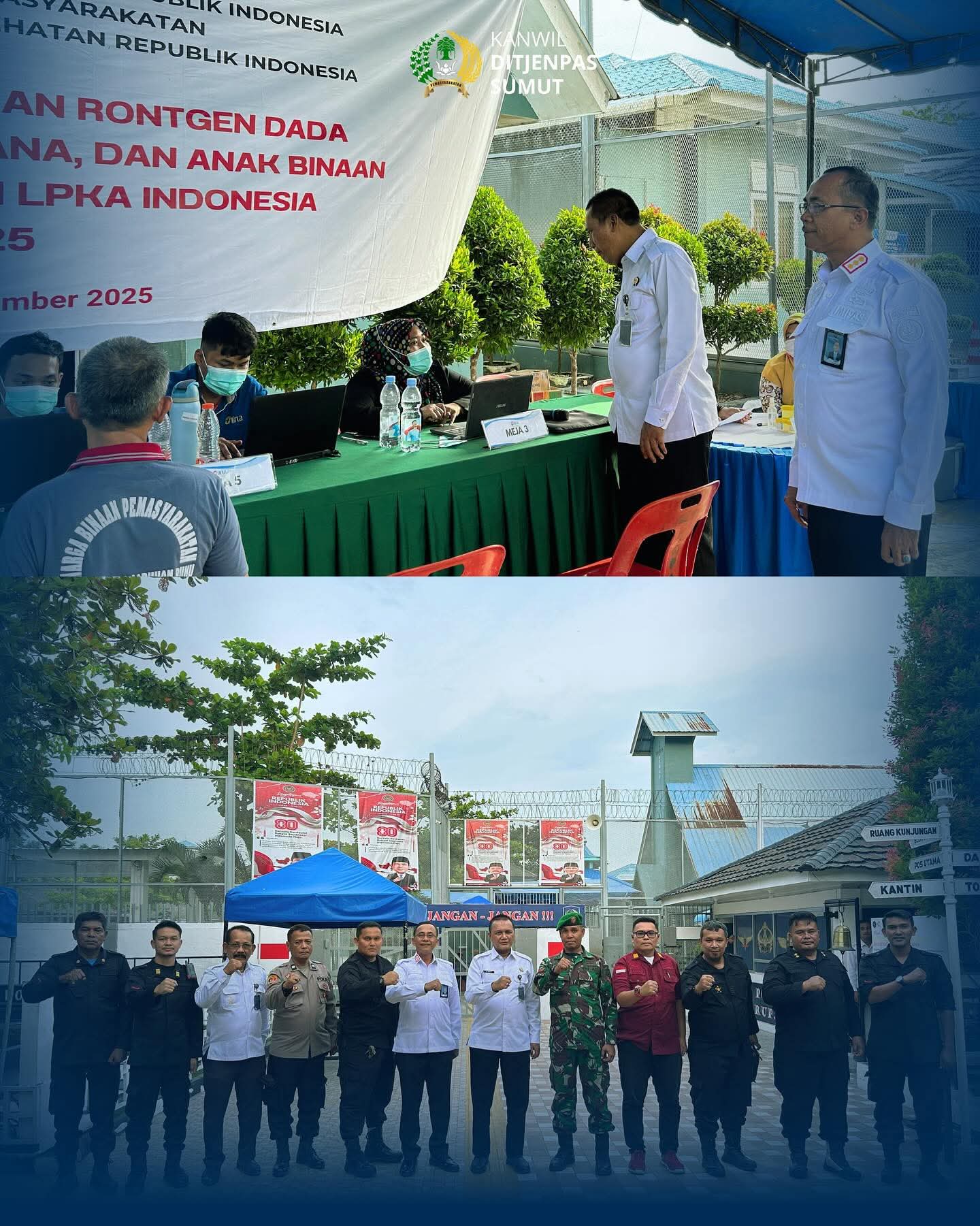 Dalam kunjungan ini, Kakanwil meninjau secara langsung pelaksanaan kegiatan screening dan ronsen paru-paru bagi Warga Binaan Pemasyarakatan (WBP) sebagai bentuk deteksi dini terhadap penyakit menular di lingkungan pemasyarakatan.