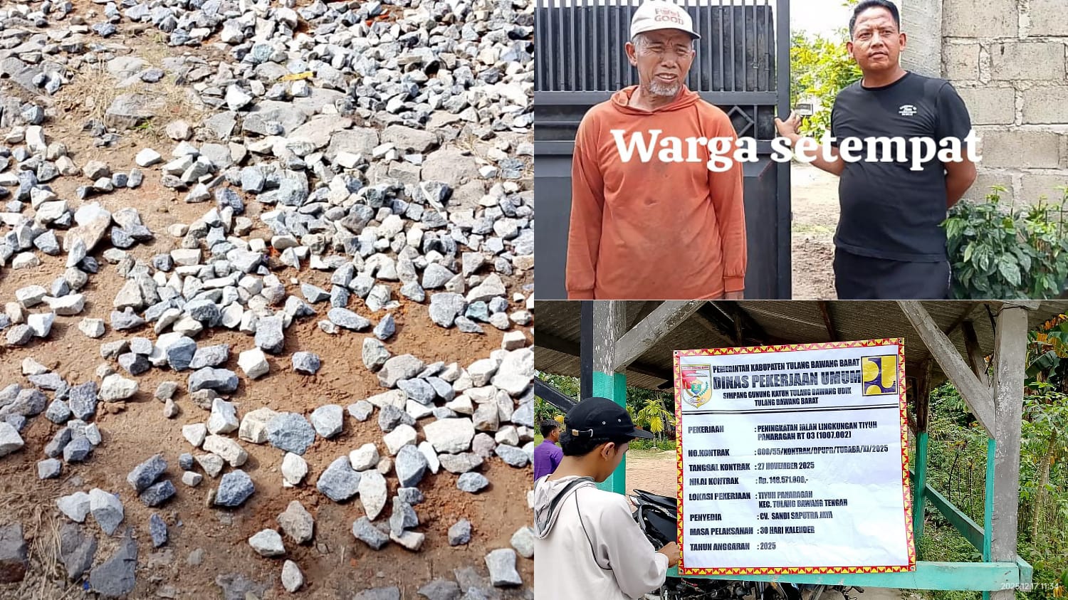 Pekerjaan Jalan Lingkungan tersebut berlokasikan di RT.3 RK 7 Tiyuh Panaragan yang di kerjakan oleh CV. Sandi Saputra Jaya dengan No Kontrak 600/55/Kontrak/DPUPR/Tubaba/XI/2025.