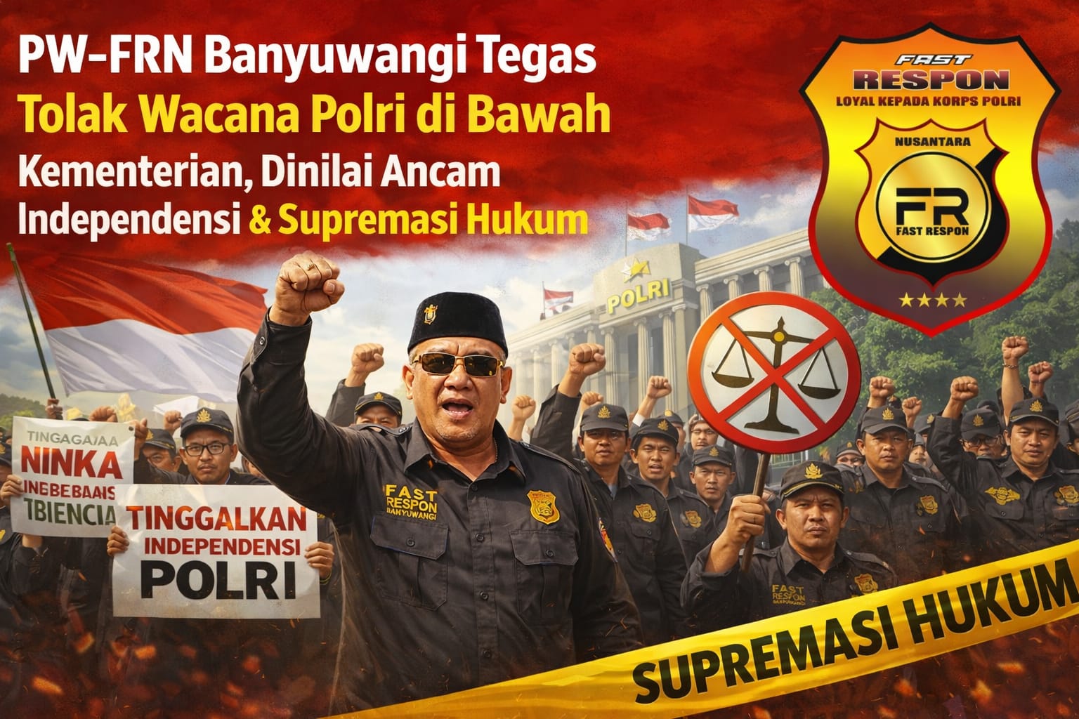 BANYUWANGI — Delik Kasus86.Com // Perkumpulan Wartawan Fast Respon Nusantara (PW-FRN) DPC Banyuwangi menyatakan penolakan tegas terhadap wacana penempatan Kepolisian Negara Republik Indonesia (Polri) di bawah kementerian. Organisasi kewartawanan yang mengusung slogan “Counter Berita Polri” menegaskan bahwa Polri harus tetap berada langsung di bawah Presiden Republik Indonesia, sebagaimana amanat konstitusi dan sistem ketatanegaraan.