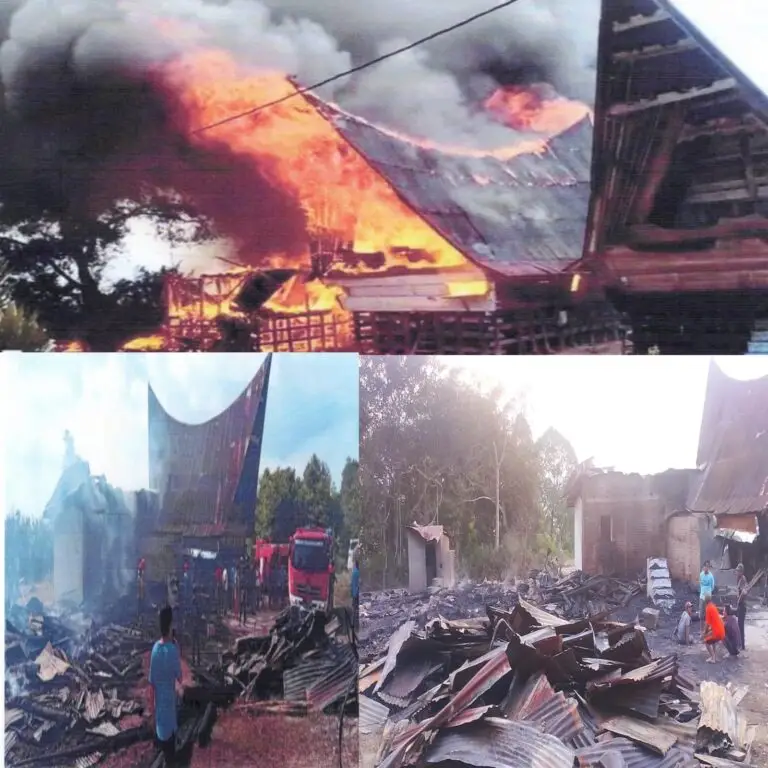 Samosir- Kebakaran hebat melanda tiga unit rumah adat Batak diperbukitan Samosir yakni di Huta Lumban Rango, Dusun III, Desa Dos Roha, Kecamatan Simanindo Kamis (30/4/2026) sekitar pukul 13:53 WIB. Peristiwa tersebut menghanguskan rumah milik Kardimen Manik, Lince br Sinaga, dan Peran Simanihuruk.