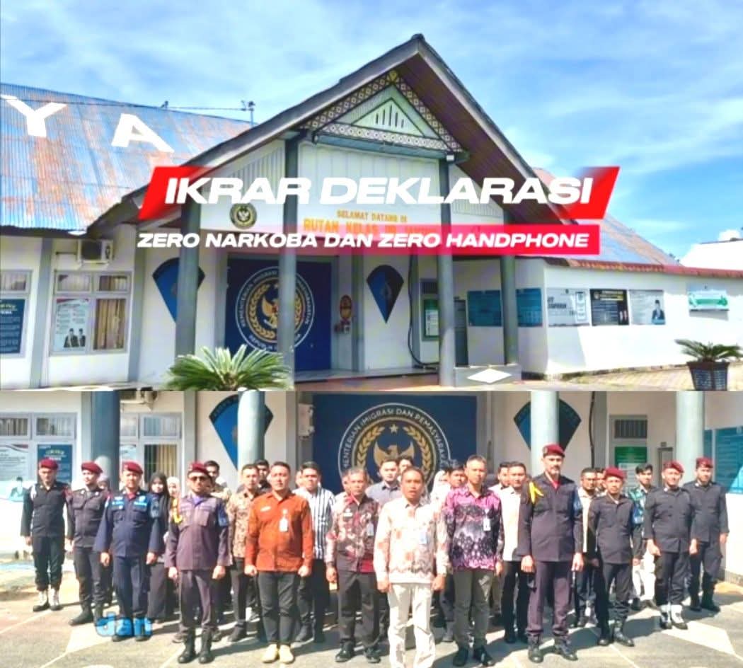 Kota Jantho, delikkasus86.com – Rumah Tahanan Negara (Rutan) Kelas IIB Jantho, Ditjenpas Aceh, Muhammad Nasir beserta jajaran secara resmi mendeklarasikan perang terhadap Narkoba dan peredaran handphone, Langkah ini ditegaskan melalui kegiatan ikrar bersama seluruh jajaran petugas dan perwakilan Warga Binaan Pemasyarakatan (WBP) yang berlangsung khidmat di depan gerbang rutan setempat, Jum’at, 17 April 2026.