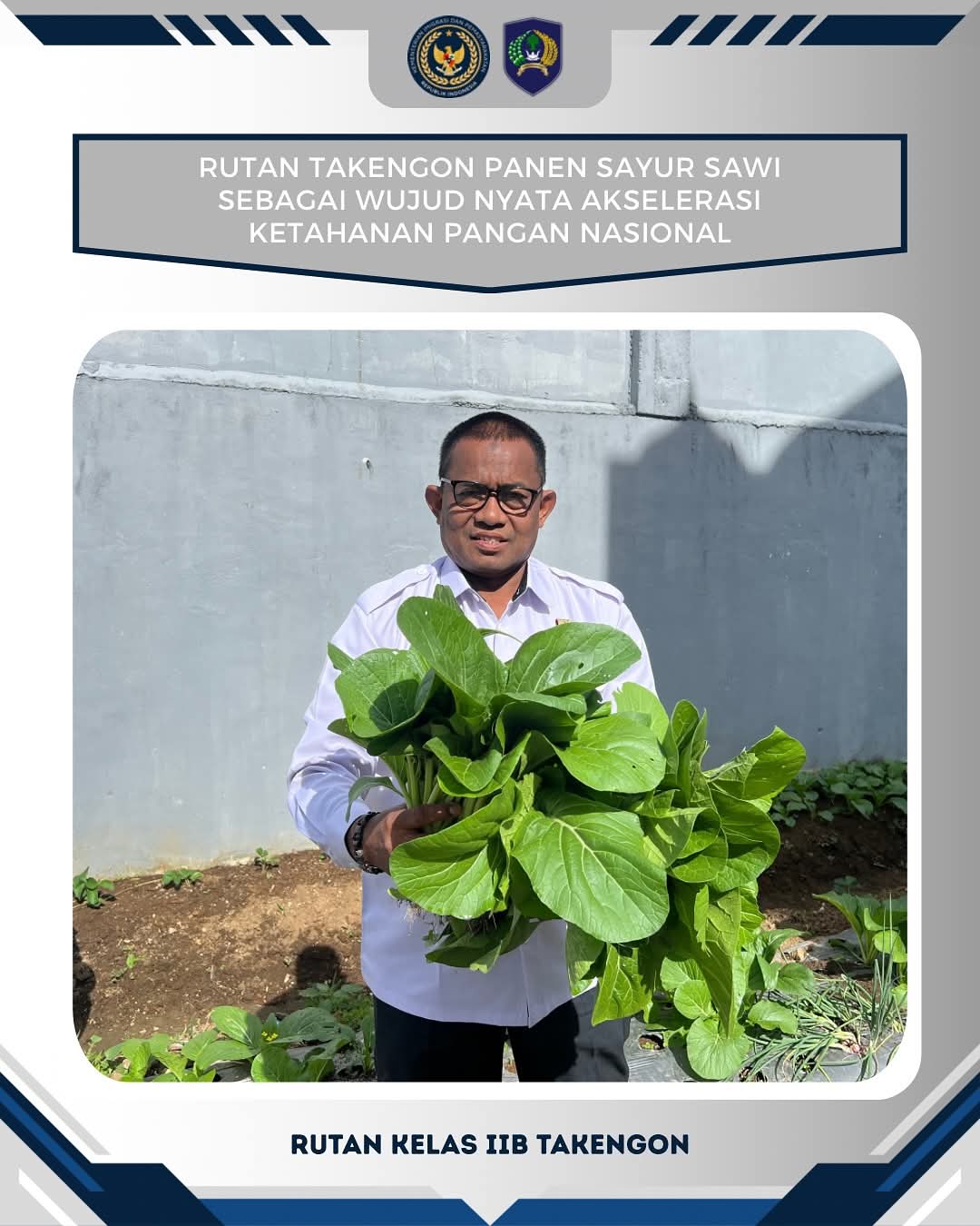 Panen sayur ini dipimpin secara langsung oleh Kepala Rutan Takengon, Rusli yang juga didampingi oleh seluruh pejabat struktural dan staf.