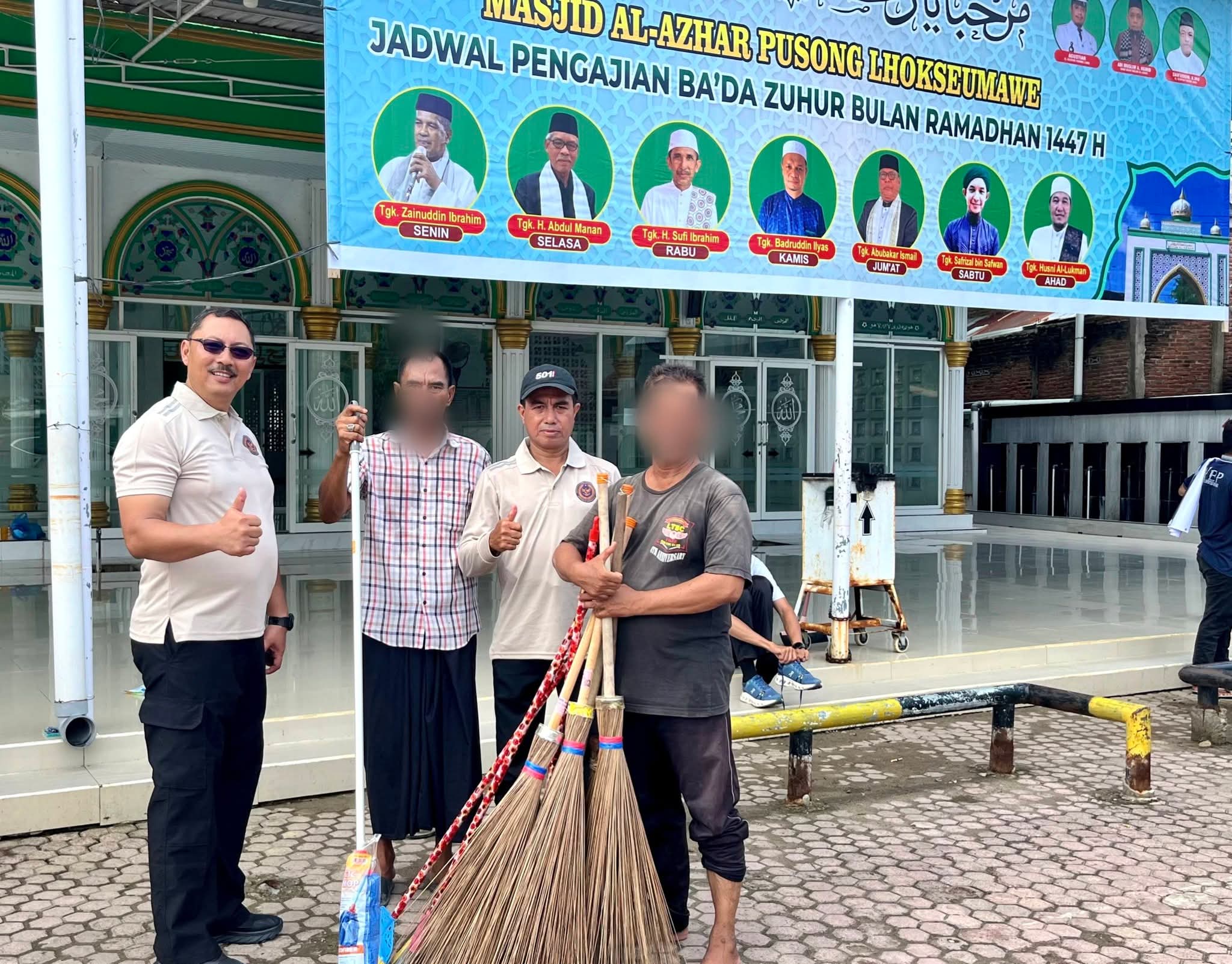 Gotong royong dilaksanakan di Masjid Al-Azhar Pusong Lama dengan melibatkan jajaran pegawai serta Warga Binaan Pemasyarakatan (WBP) Lapas Kelas IIA Lhokseumawe.