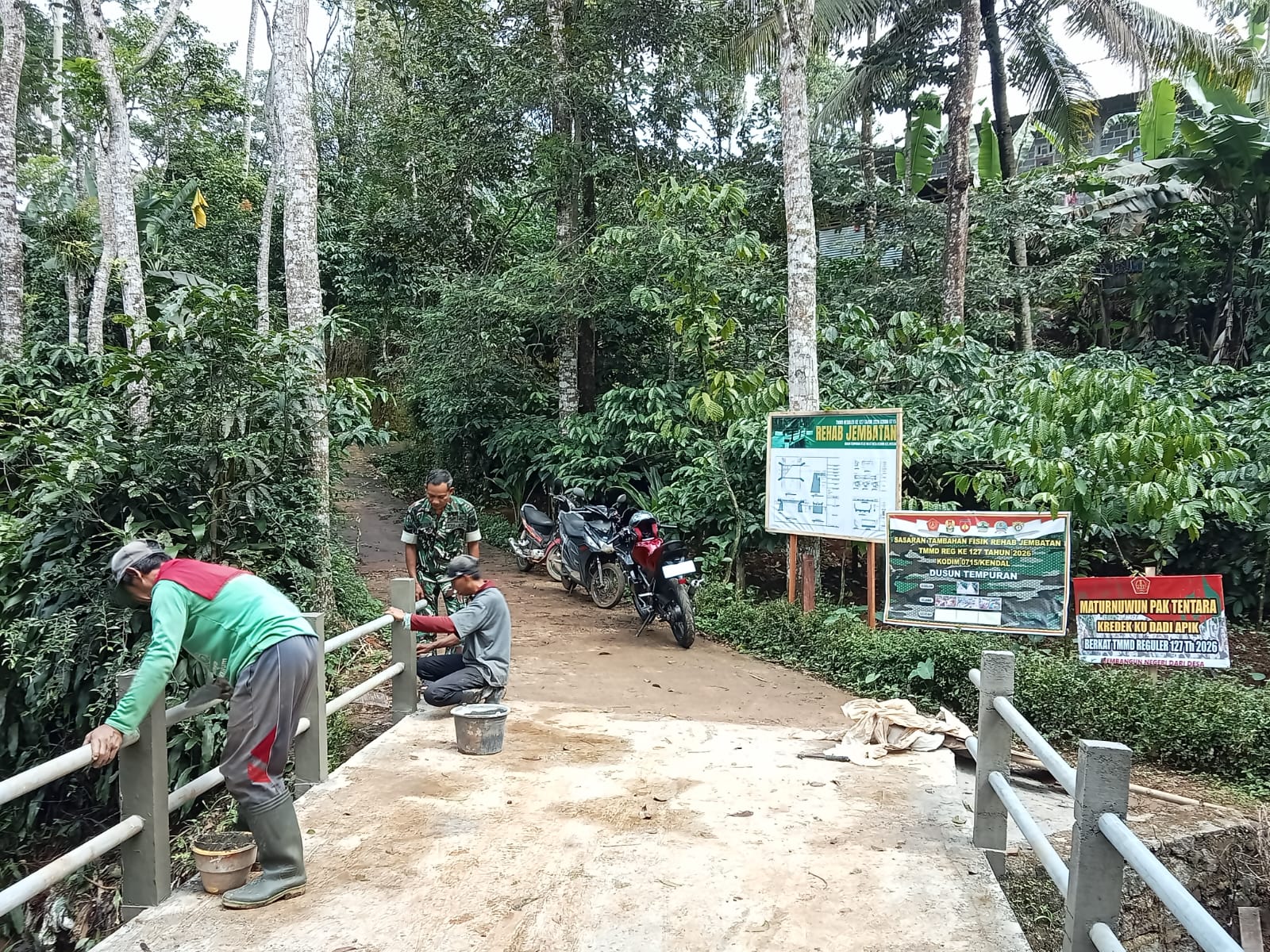 KENDAL Jateng,delikkasus86.com– Program TNI Manunggal Membangun Desa (TMMD) Reguler ke-127 Kodim 0715/Kendal terus menunjukkan hasil nyata di Desa Gedong. Salah satu sasaran tambahan berupa pembangunan fisik jembatan kini telah memasuki tahap finishing.