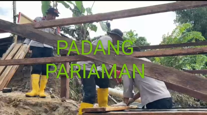 PADANG PARIAMAN — Personel Satuan Brimob Polda Sumatera Barat membangun jembatan darurat yang menghubungkan Nagari Kataping dengan Nagari Sungai Buluah, Kecamatan Batang Anai, Kabupaten Padang Pariaman. Pembangunan tersebut dilakukan untuk memulihkan akses transportasi warga yang terputus akibat kondisi darurat.