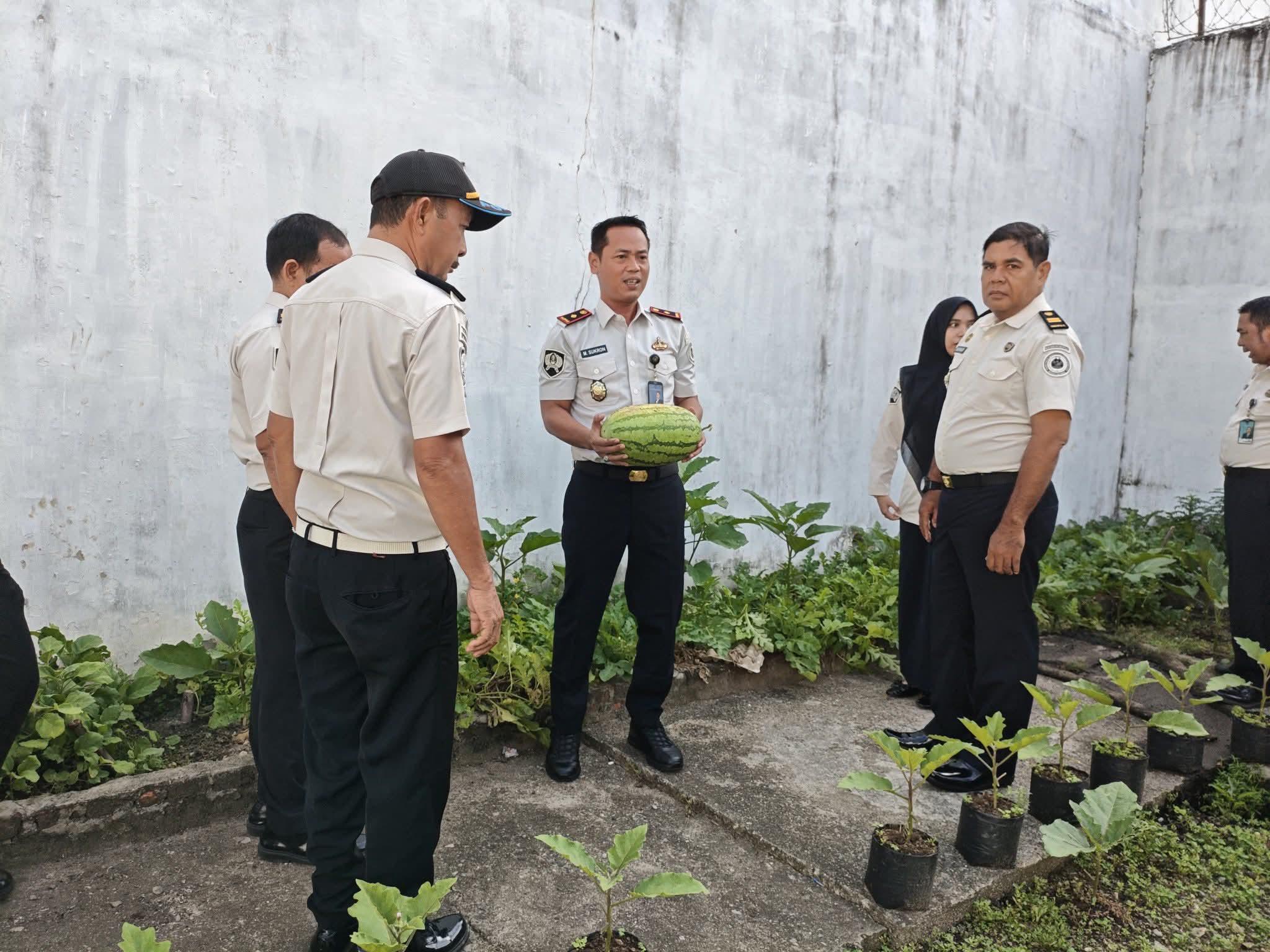 Panen semangka tersebut dilaksanakan langsung oleh Kepala Rutan, Muhamad Sukron bersama pejabat struktural, staf, dan peserta magang nasional.