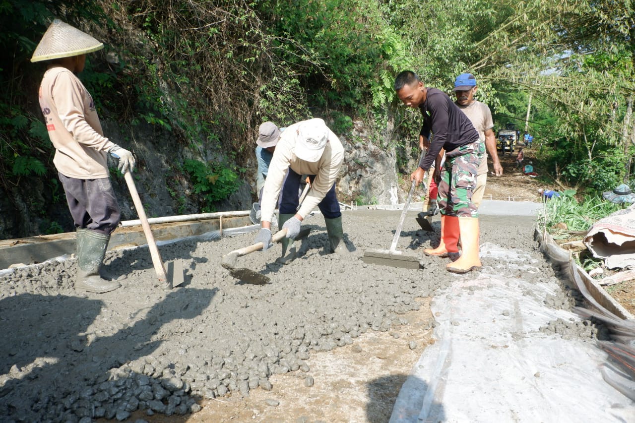 Pengerjaan jalan sepanjang ratusan meter ini melibatkan personel TNI, pemerintah daerah, serta warga Desa Bandardawung yang bahu-membahu tanpa mengenal lelah. Semangat gotong royong terlihat jelas di lapangan, di mana warga turut serta membawa bahan bangunan, menyiapkan adukan semen, hingga membantu pengangkutan alat secara manual. Sinergi antara aparat dan masyarakat ini menjadi bukti kuat bahwa pembangunan desa akan berjalan lebih cepat bila dilakukan bersama.